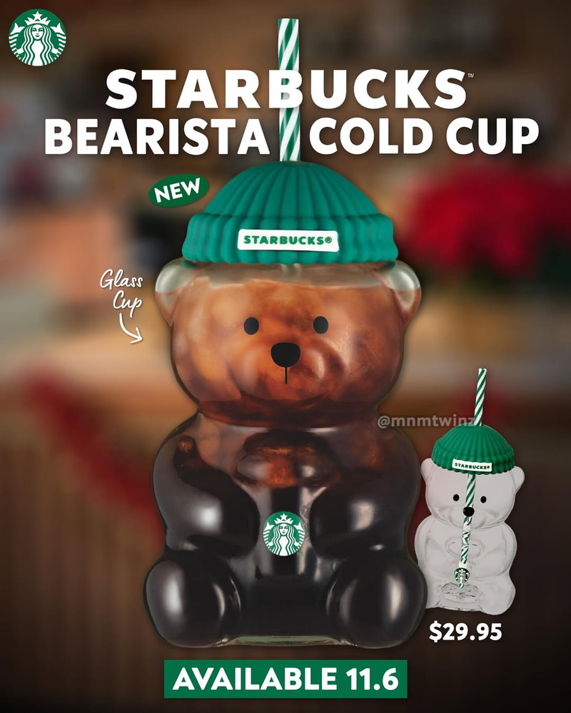 Starbucks 2025 Bearista 17oz Xmas Glass Tumbler Cup Portable,Lightweight,Leakproof,with Draw Fast shipping 30 days return