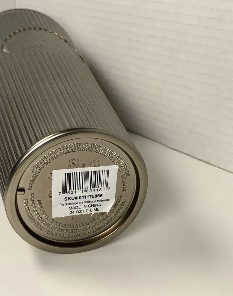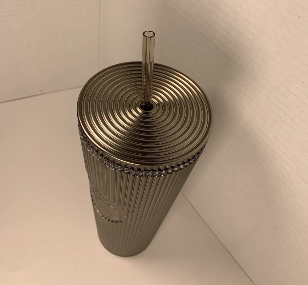 The Starbucks 2025 Holiday Pleated Metallic Bronze Gold Shiny Cold Cup Tumbler is a new collectible item featuring the iconic Starbucks brand. This tumbler is originally designed with a bronze and gold color scheme, making it a unique and eye-catching piece for coffee and tea enthusiasts. Made in China, this original and themed tumbler is perfect for showcasing your love for Starbucks while enjoying your favorite beverages.
