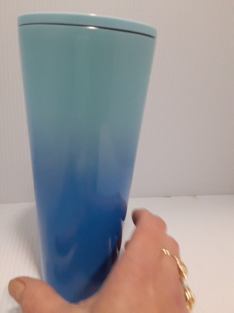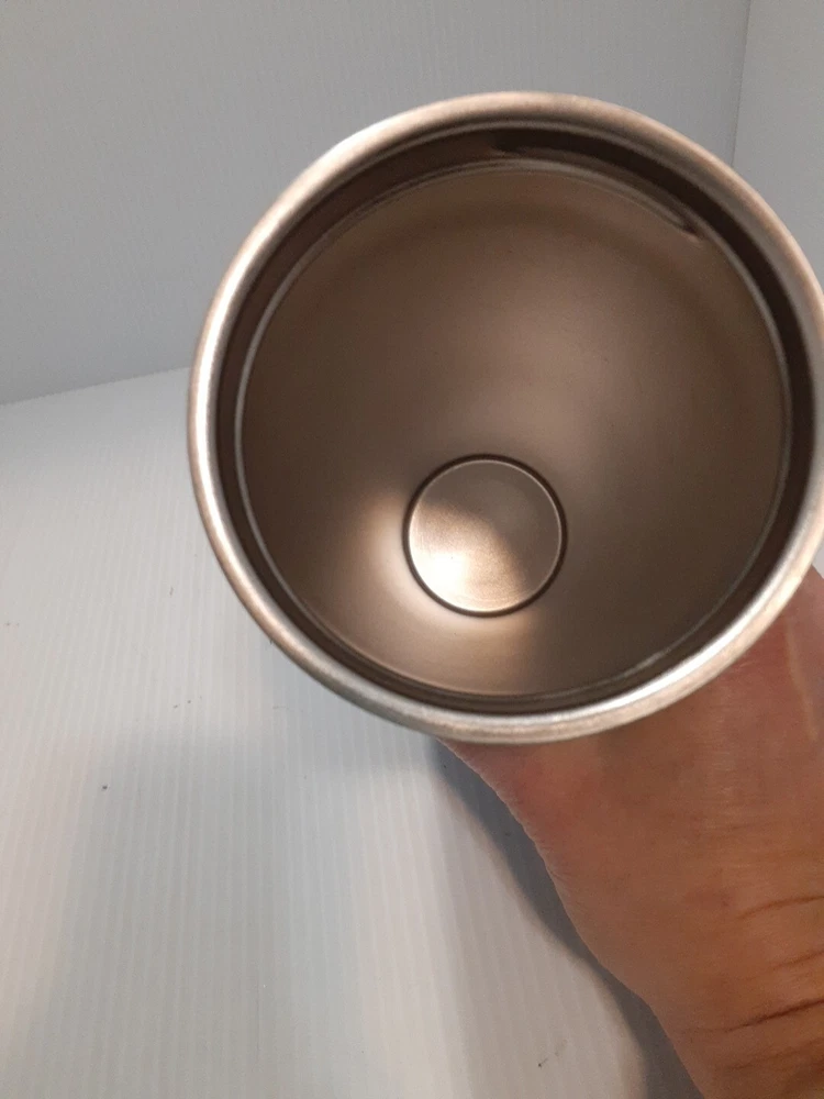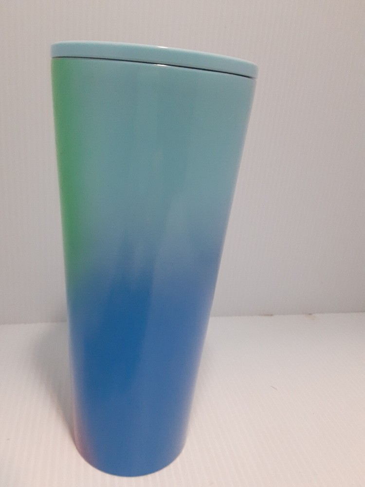 Metal 24oz cold cup with lid. Some paint loss on bottom, small chip in lid.