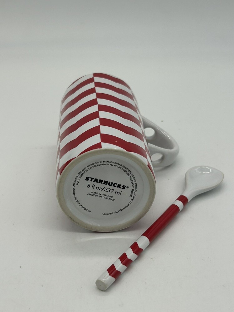 Starbucks Red/White Holiday Chevron Pattern Ceramic Mug w/ Spoon 8oz - 2013. Condition is "Used". Shipped with USPS Priority Mail.