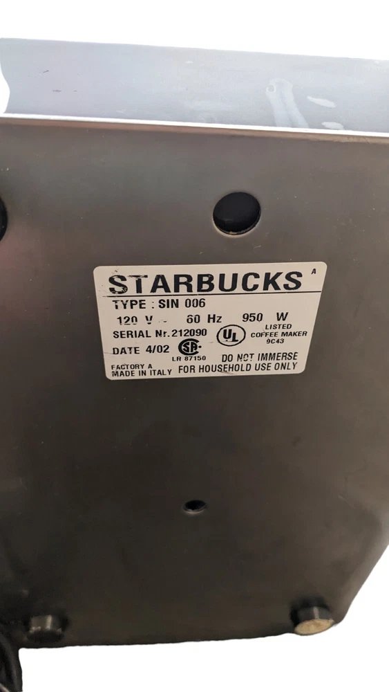 Model: SIN006 Color: Silver Type of Coffee Made: Espresso, Hot Milk Brand: Starbucks Type: Espresso Machine Country/Region of Manufacture: Italy