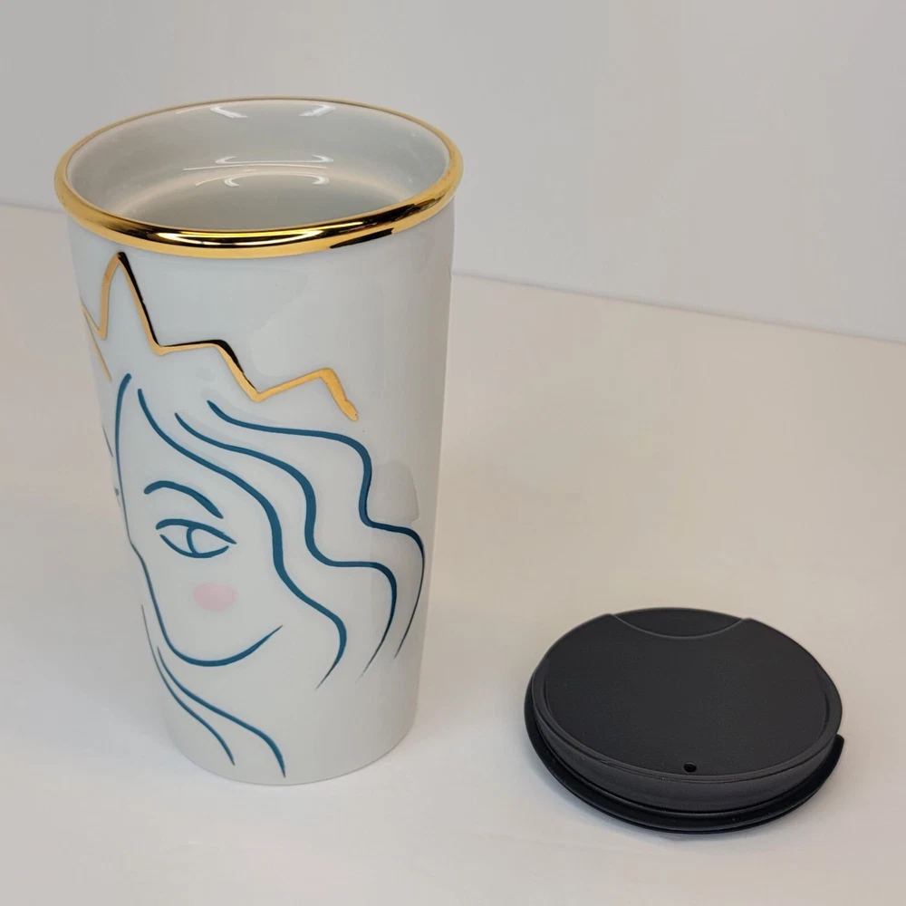 Starbucks Coffee Ceramic Tumbler Gold Crown Mermaid Anniversary Collection 2017 Sip in style with this Starbucks Coffee Tumbler featuring a gold crown and winking mermaid design. Part of the Anniversary Collection from 2017, this tumbler is a delightful addition to any Starbucks or coffee memorabilia collection. Key Features: β Collectible Design: Gold crown and winking mermaid for a touch of whimsy. π Anniversary Collection: Released in 2017 to celebrate Starbucks' special milestone. π High-Quality Construction: Durable for everyday use. π Perfect for Starbucks enthusiasts and collectors! Click "Buy Now" to make this limited edition tumbler yours. Feel free to contact us for any questions or additional information. βπ