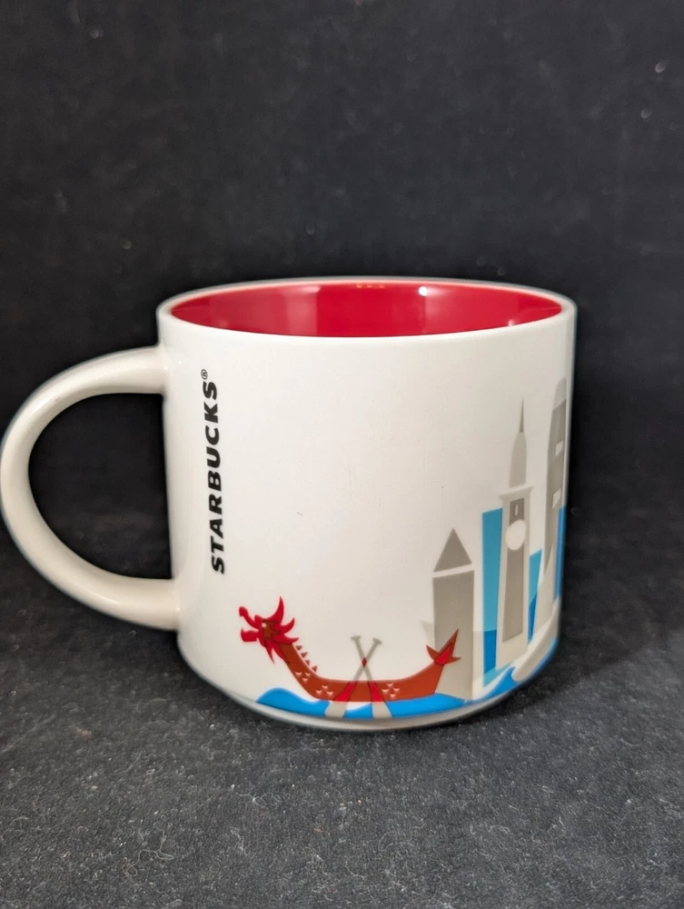 This Starbucks coffee mug is a must-have for any travel enthusiast. The mug features a beautiful multicolor design with the California Adventure pattern and a Hong Kong theme. It has a capacity of 14 fl oz and is made of high-quality ceramic/porcelain material. The mug is microwave and dishwasher safe, making it perfect for use on any occasion. It stands at 3.5" tall and has a width of 4". The You Are Here model is a classic addition to any collection. Get your hands on this limited edition mug from the 2017 Starbucks You Are Here collection.