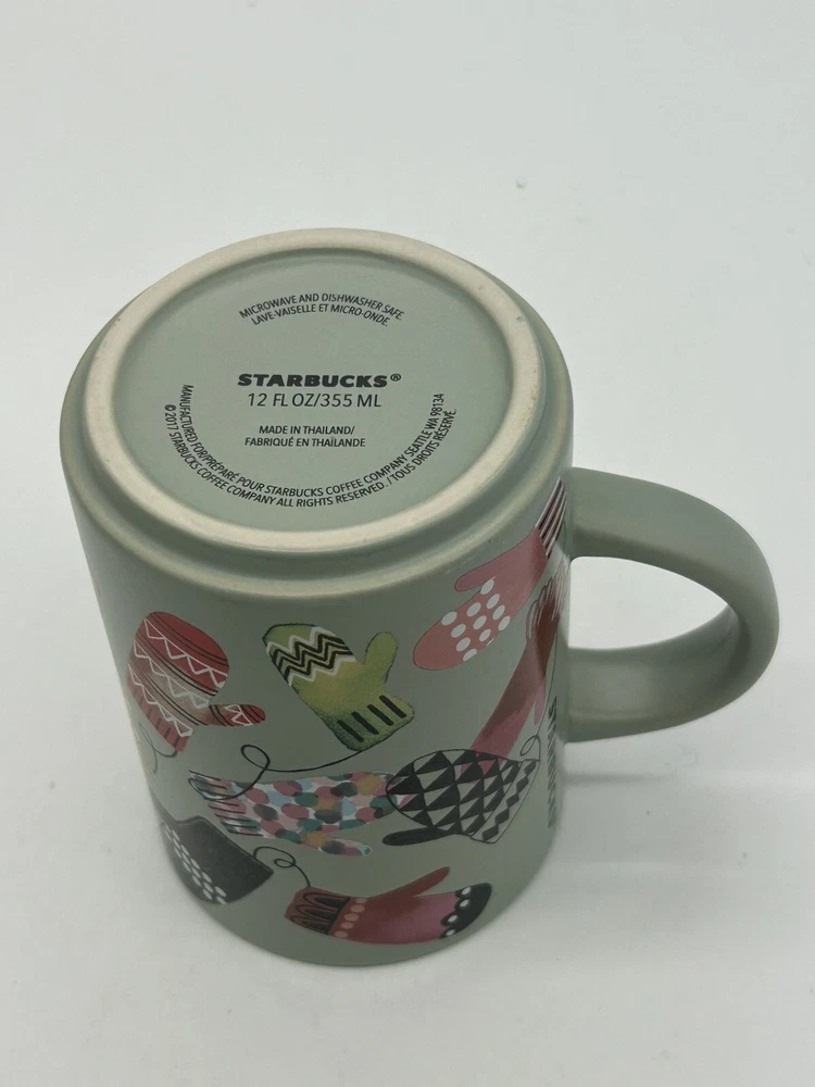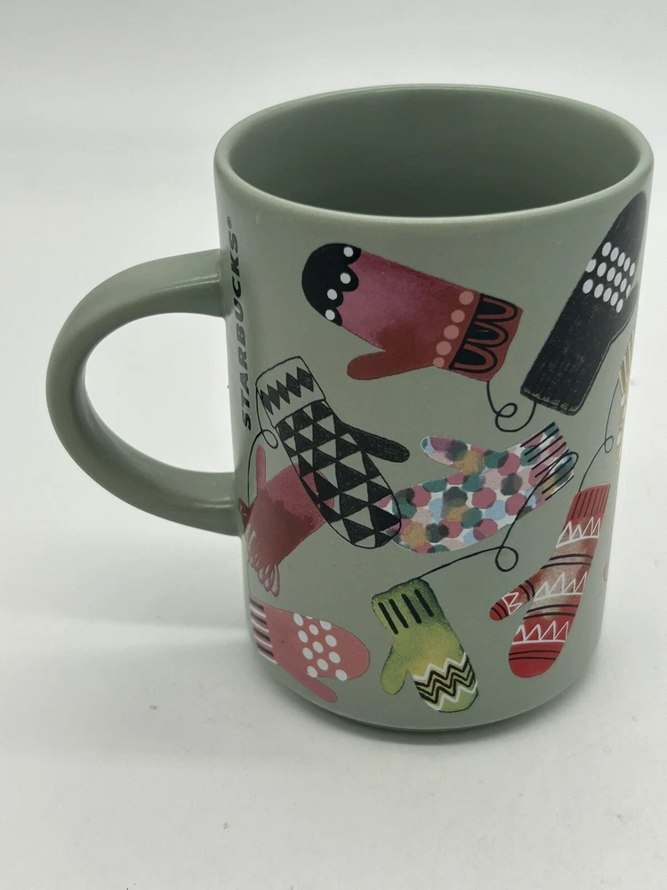 Starbucks Coffee Tea Mug Christmas Sage Green with Colorful Mittens - 2017