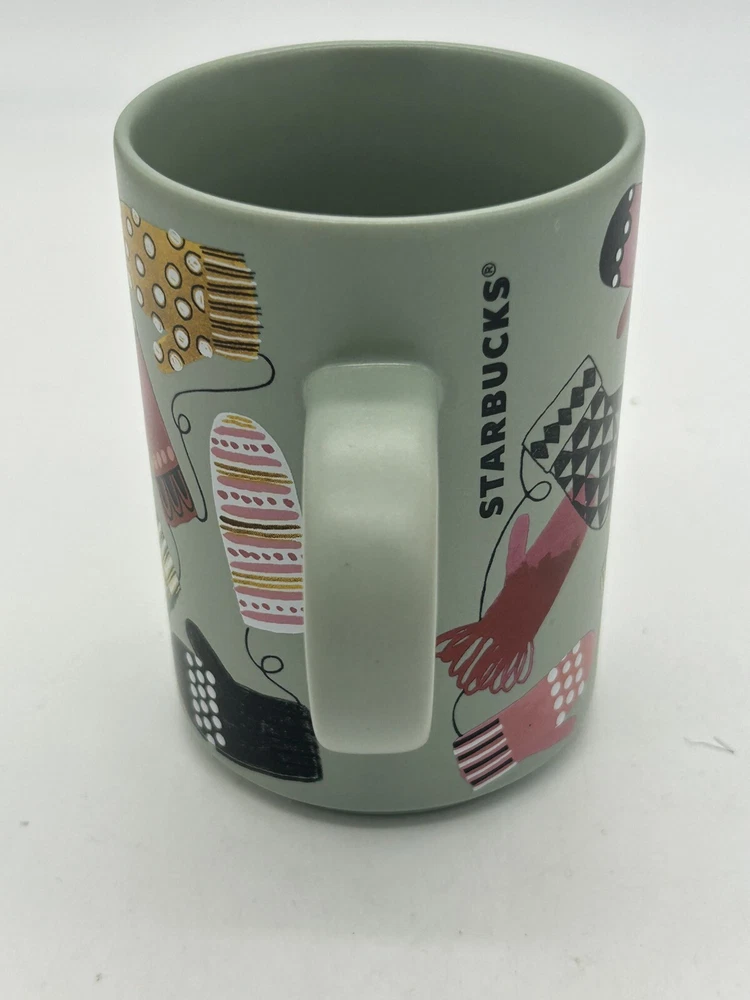 HomeStarbucks Coffee Tea Mug Christmas Sage Green with Colorful Mittens - 2017