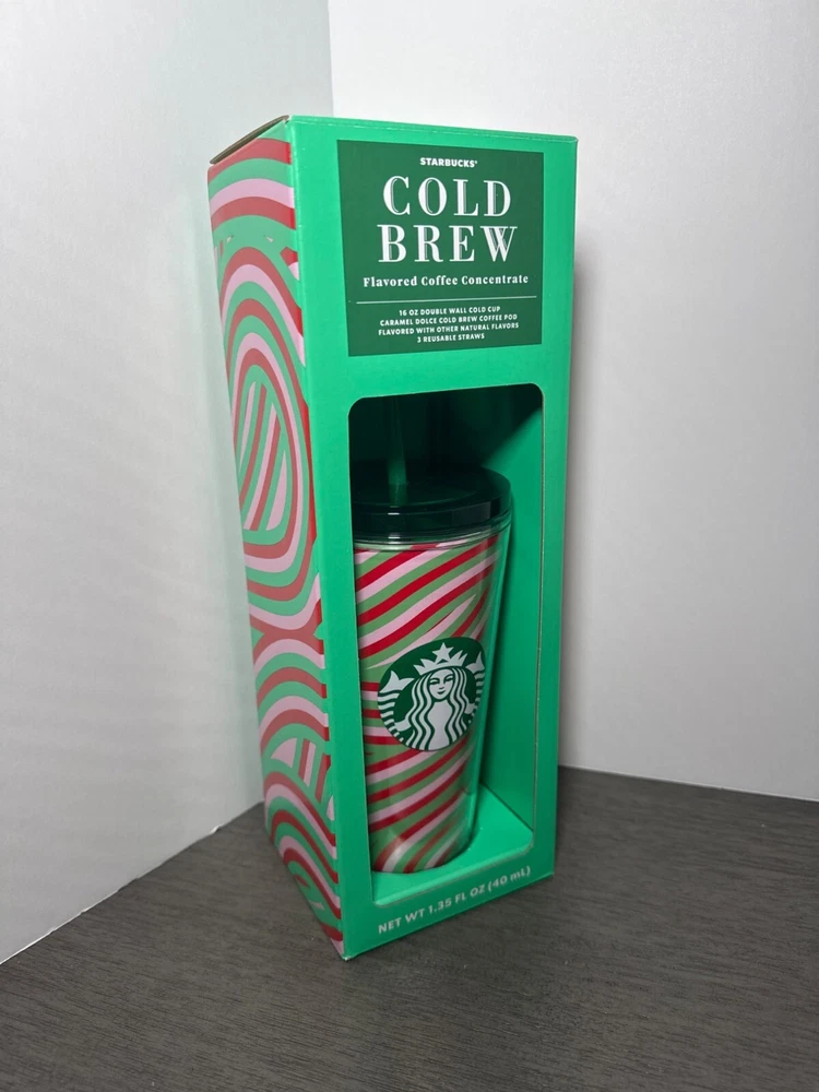 16oz double wall cold cup Carmel dolce cold brew coffee pod 3 reusable green straws Pink,green,red Condition: New