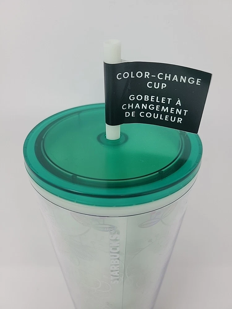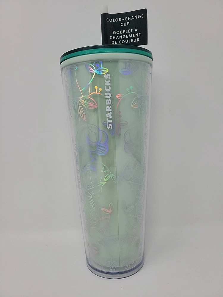 This Starbucks Venti Tumbler is a perfect addition to your collection. The tumbler has a color-changing feature that makes it stand out from the rest. Made of high-quality material, this tumbler is perfect for travel and can hold up to 24oz of your favorite beverage. The design features a unique coffee & tea theme that will surely catch the attention of anyone who sees it. The tumbler is an original piece and was created in China in 2022. It is in excellent condition. Item is new with tags.