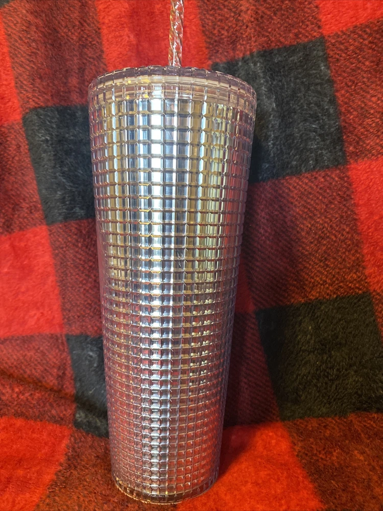Introducing the Starbucks Disco Grid Tumbler Cup from the 2020 Holiday Collection. This 24 oz cup features a stunning silver color and is designed to showcase your love for coffee and tea. Made in China, this original piece is a must-have for any Starbucks enthusiast. The tumbler is adorned with a cold cup theme and features the iconic Starbucks brand. It is a type of advertising sign that is perfect for collectors. The cup's creation date is 2020 and it has not been modified. Add this unique Starbucks collectible to your collection today.