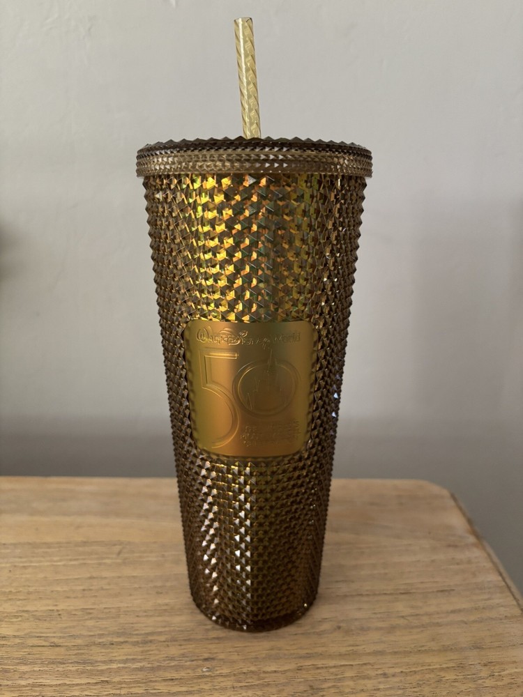 Celebrate the 50th anniversary of Disney with this limited edition Starbucks gold cup. This collectible item features the iconic Mickey Mouse and Minnie Mouse in their golden glory, surrounded by a beautiful gold-colored coffee blend. The cup is an original Starbucks product, created in 2023, and is perfect for any coffee and tea lover. The cup is part of the Starbucks collection and is featured under the categories of Collectibles, Advertising, Food & Beverage, and Coffee & Tea. It is an ideal addition to any collection and is sure to bring a smile to anyone's face. Get your hands on this unique item before it's too late!