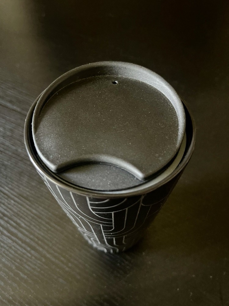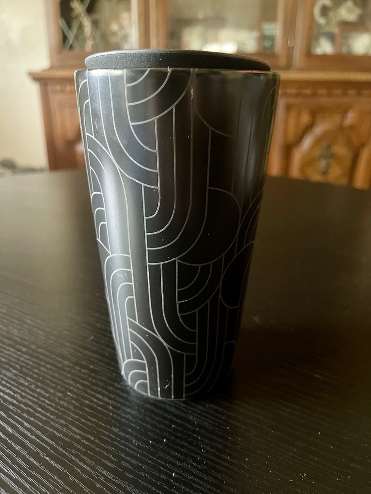 Starbucks Fall 2020 Black Geometric Etched 12oz Ceramic Travel Tumbler