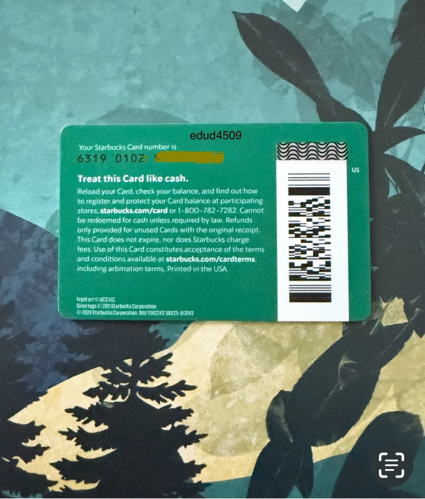 2024 Starbucks + Wicked "One Short Day in the Emerald City" Gift Card * This card has never been scanned, loaded or registered. No value (zero balance) * Collectible * Barcode * Prefix 6319 * Authentic Starbucks recycled gift card Combined shipping discount available. Please request a total from me (add items to your cart ) before submitting any payment. If you purchase and pay for items separately I CANNOT go back and add a discount. Carefully packed for safe arrival. Items are shipped via USPS with tracking. I do not profit from shipping costs Thank you!