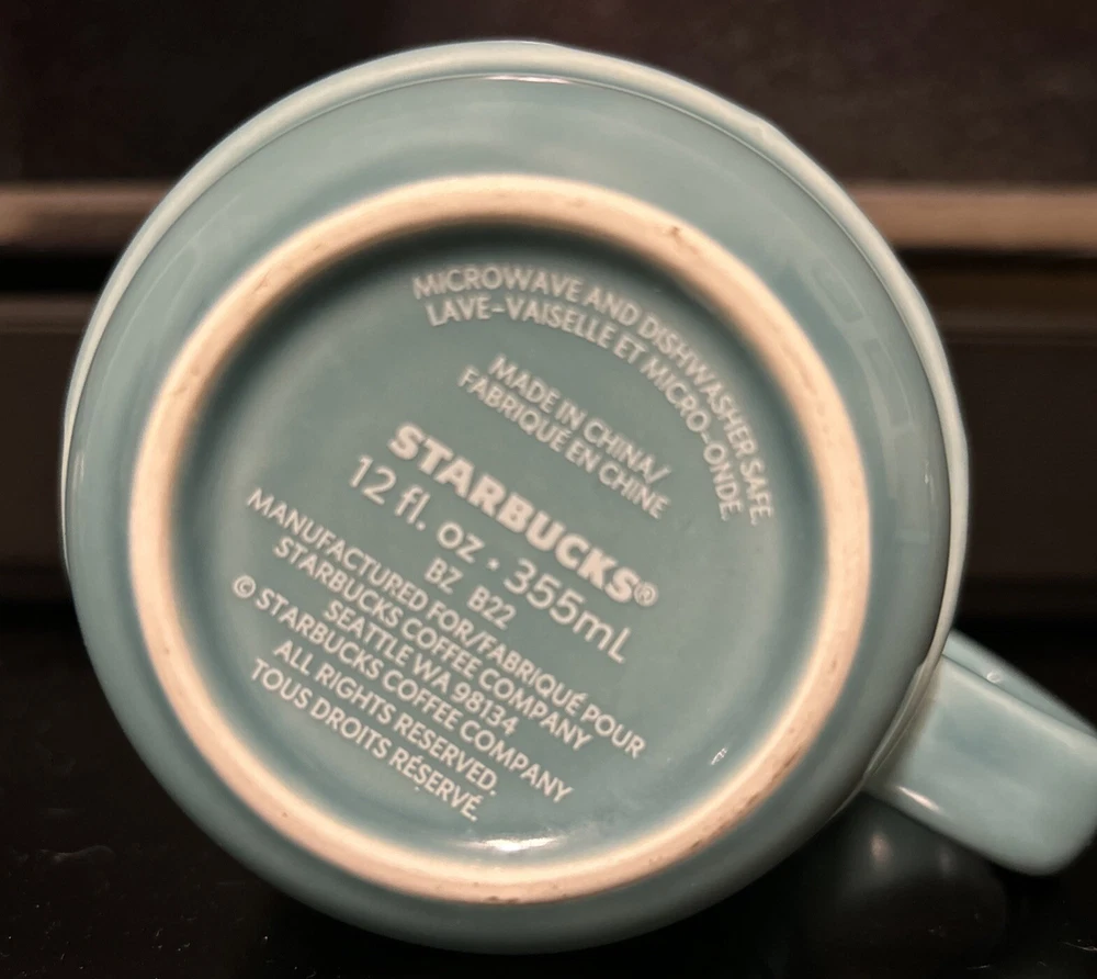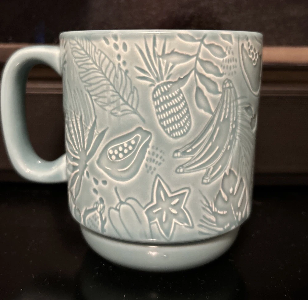 The product is a Starbucks Hawaii Blue Embossed Coffee Mug Cup, with a volume of 12 oz and a ceramic material. It features a left-handed and right-handed design, with a blue interior color and an original creation date of 2022. The mug showcases a Starbucks theme, specifically related to coffee and tea, and is identified as an original Starbucks collectible item. Made in China, the mug is adorned with a sign advertising design and does not come with a box.