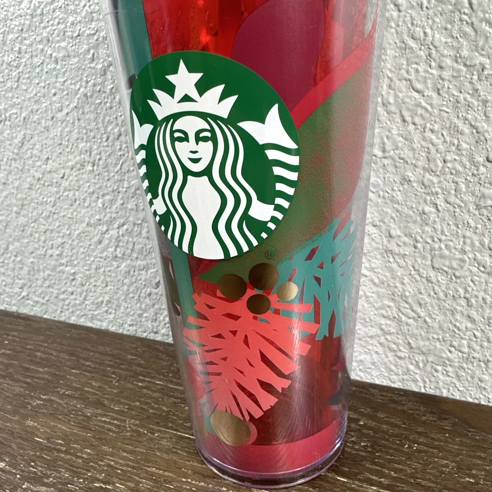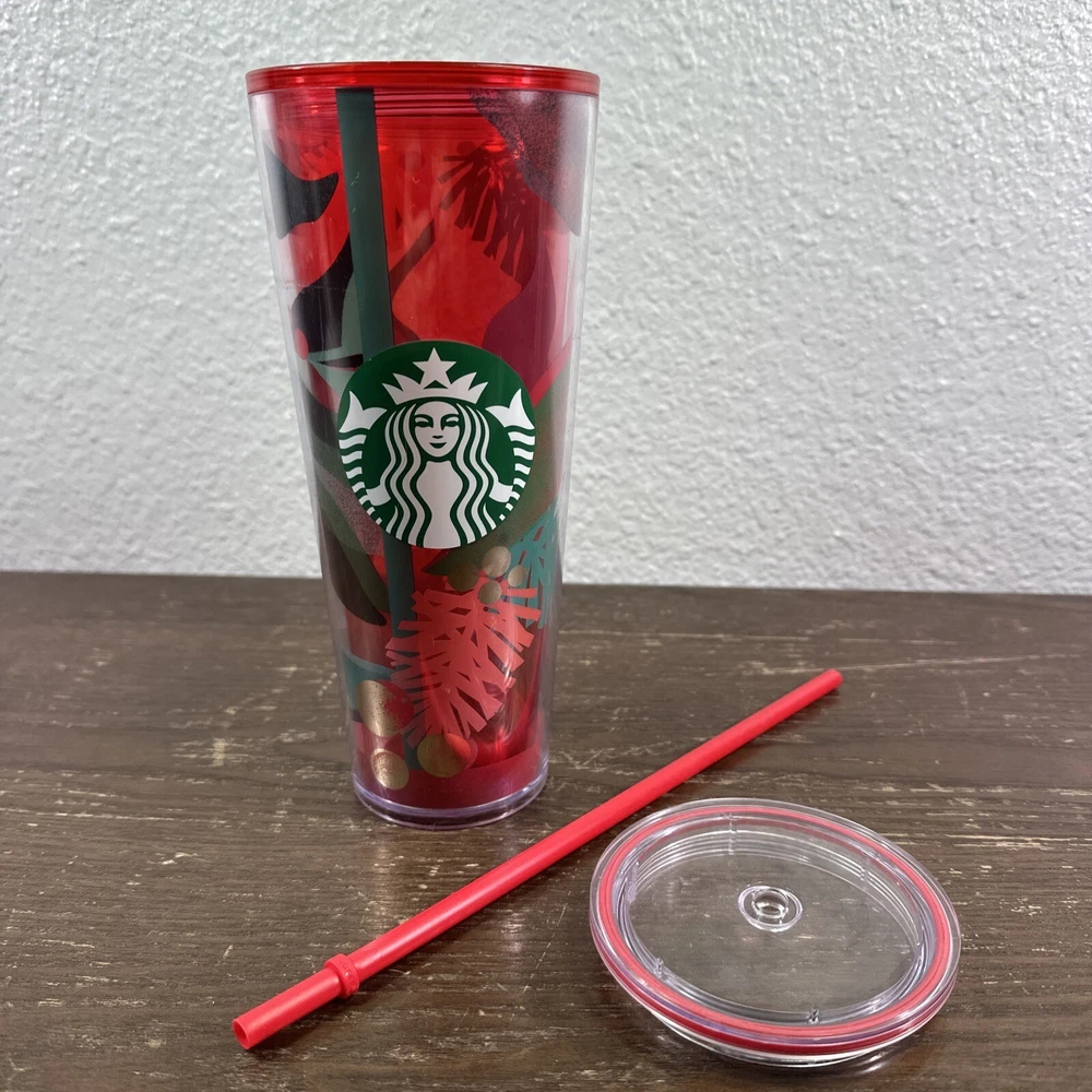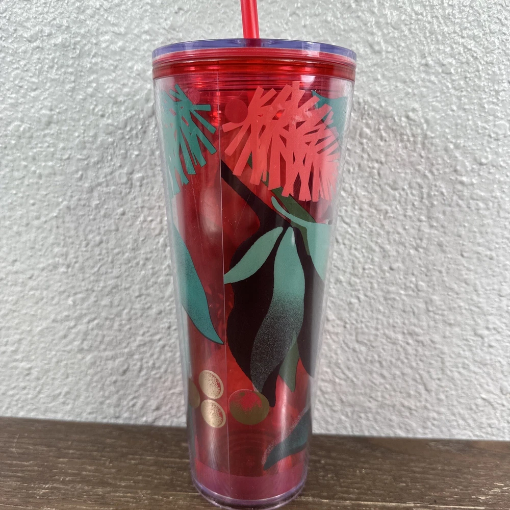 Starbucks Holiday 2018 Plastic Cold Drink 24oz Holly Tumbler With Straw