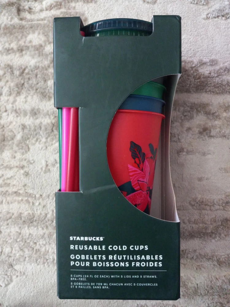 Starbucks Holiday Christmas 2021 Reusable Cold Cups Set of 5 NEW