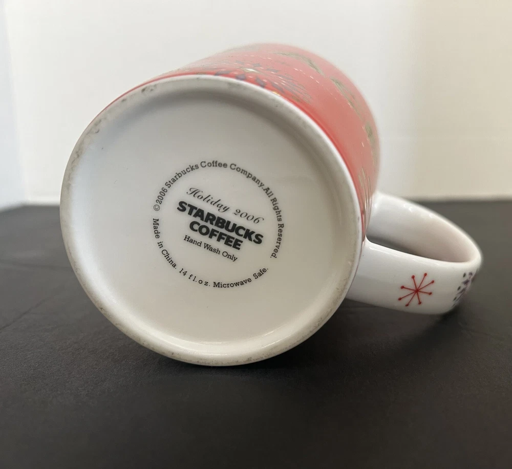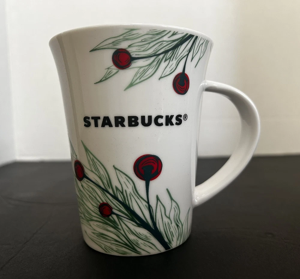 This is a set of two Starbucks holiday/Christmas cups or mugs, the red Peace mug, a rare find from 2006, hand wash only, and the red, green and white Holly Berry pine from 2020 which is microwave and dishwasher safe. These are original pieces and perfect for collectors of coffee and tea accessories. The mugs are branded with the Starbucks logo and are ideal for enjoying your favorite hot beverage during the holiday season. Add them to your collection of Starbucks merchandise or give them as a gift to a fellow coffee lover. No cracks, chips; good used condition.