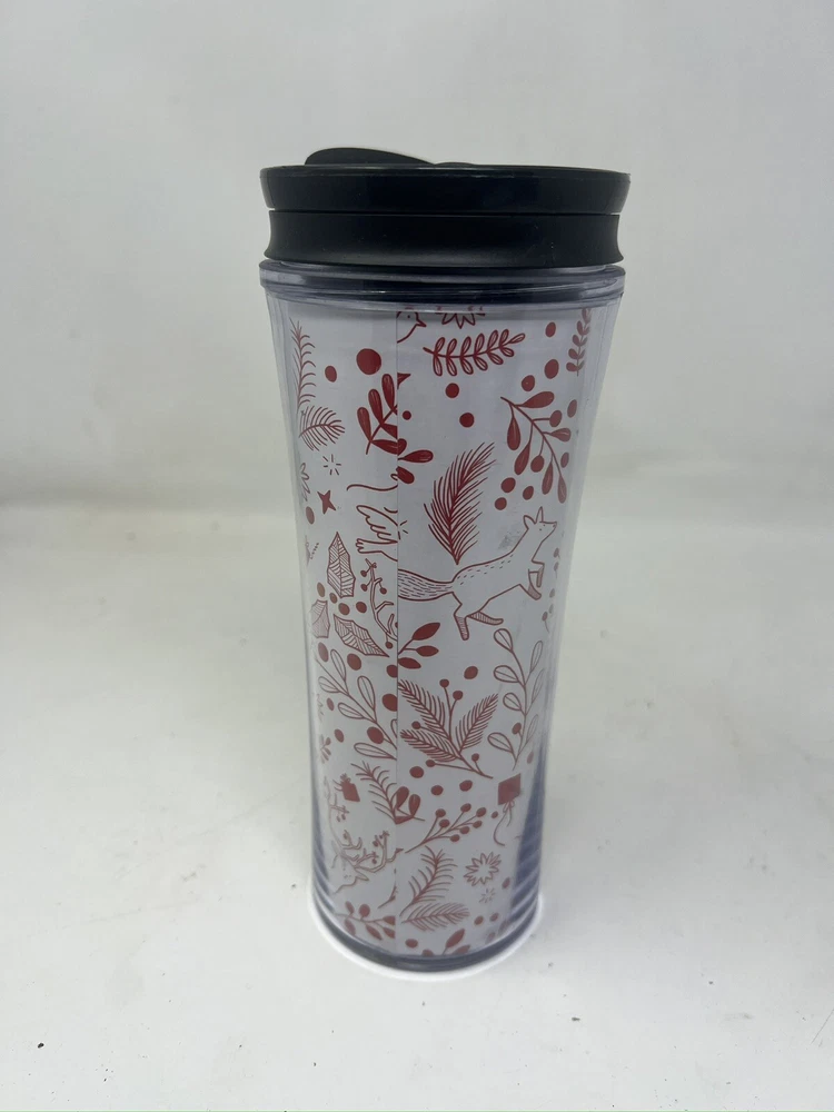 Starbucks Holiday Tumbler Cup 2018 16 oz White & Red Dove Reindeer Fox Christmas Good used condition Includes lid