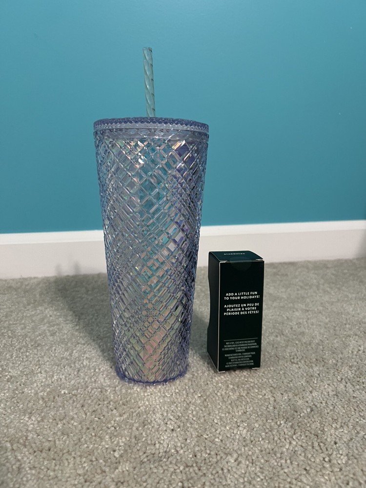 The Starbucks Iridescent Jeweled Tumbler-Venti 24oz with Matching Holiday Ornament is a unique and eye-catching collectible advertising item. The tumbler features a multi-color iridescent design with jeweled embellishments, making it a standout piece for any Starbucks enthusiast. The matching holiday ornament adds an extra touch of charm and festivity to the set, making it a perfect gift for those who appreciate coffee and tea-themed items. Perfect for adding a touch of sparkle to any collection or holiday decor. Very lightly used, like New! Comes with Matching Holiday Ornament Key Chain!