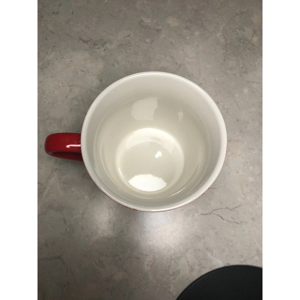 Starbucks Large 18oz Christmas Coffee Mug Red with snowflake and white and green Poinsettias New without tags