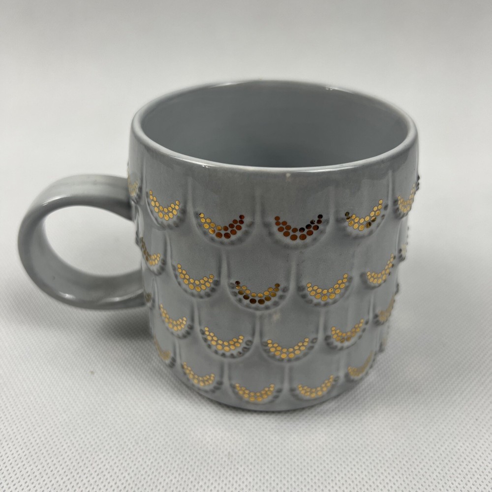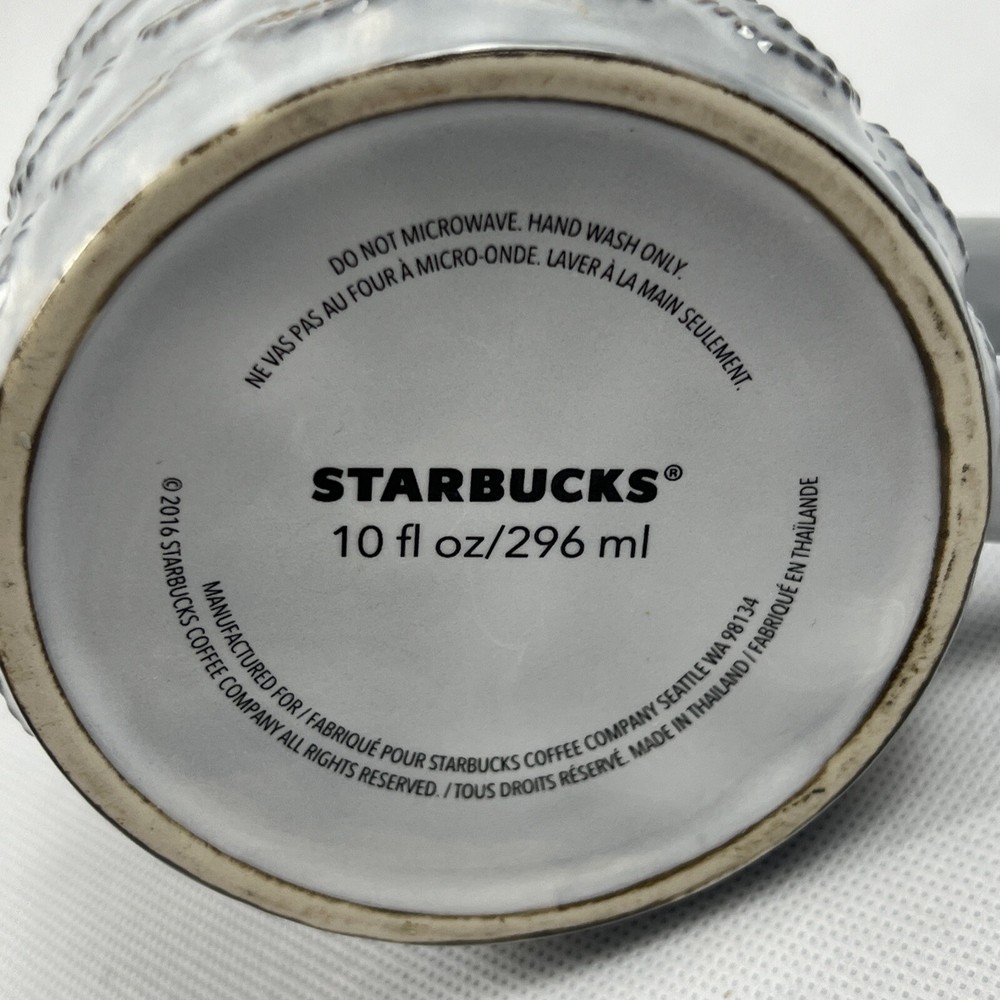 This Starbucks coffee mug features a beautiful mermaid design with raised scales, perfect for any coffee or tea lover. The mug is adorned with a lovely combination of light grey and gold colors, making it a great addition to any collection. It is a commemorative item released for the 2016 anniversary and is a must-have for any Starbucks or coffee mug collector. The item is pre-owned but in great condition, ready to be enjoyed by its new owner.