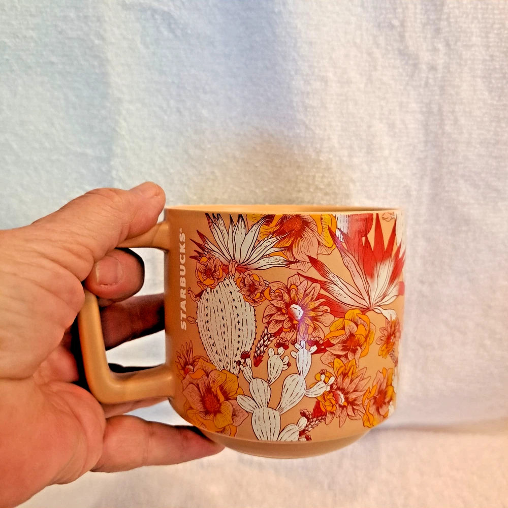 Welcome to my collection of my personal home items. I purchased this coffee cup as new and have never used it. No cracks or chips. Free shipping. The Starbucks 2019 Ceramic tan Pink Cactus 14oz Stackable Mug is a stylish and fun addition to any coffee or tea lover's collection. Made of ceramic with a tan pinkish color, this original Starbucks mug features the iconic coffee & tea theme. With a capacity of 14oz, it is perfect for enjoying your favorite hot beverages. This collectible item was manufactured in China and is a unique piece that showcases the Starbucks brand in a creative way.