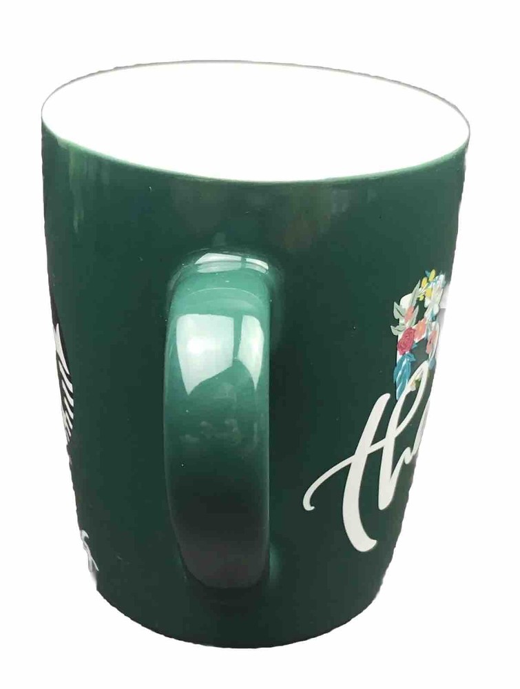Starbucks Mug 2020 Big Thanks Siren Mermaid Logo Coffee Cup Green Floral 10 oz.