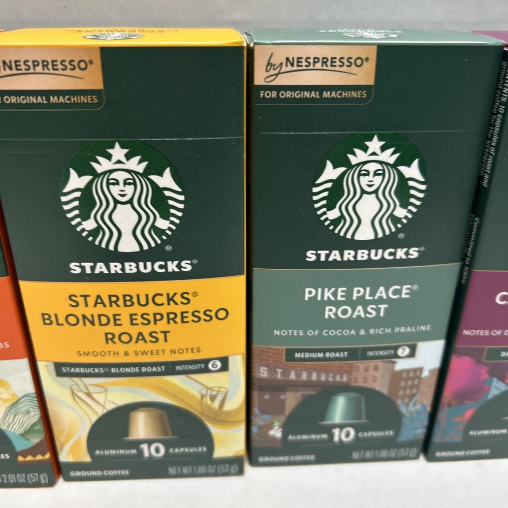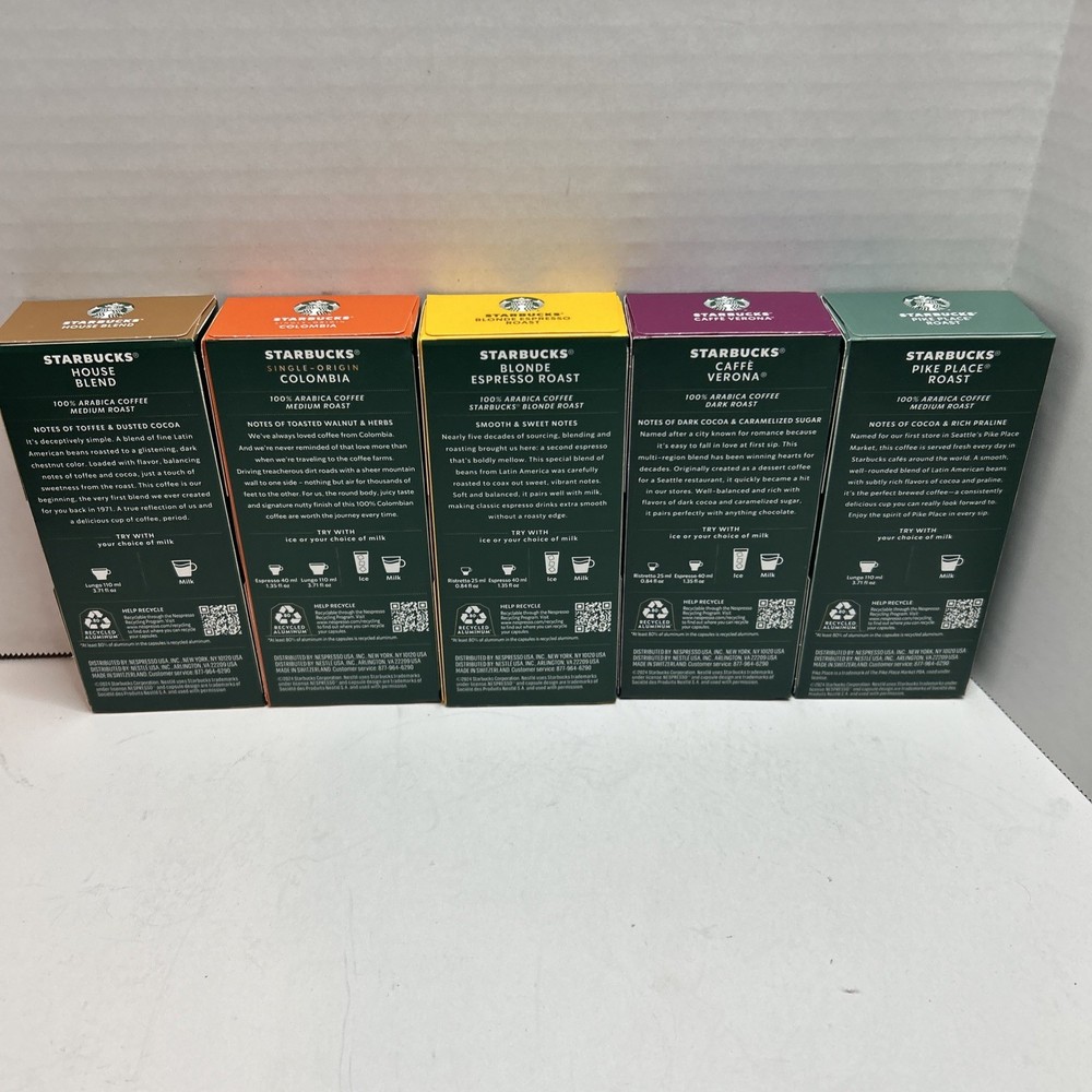Indulge in the variety and convenience of Starbucks Nespresso Flavored Coffee with this 50 count pack of capsules. Enjoy a range of delicious flavors from the comfort of your own home with these espresso pods. With a serving size of 1 cup and less than 50 calories per serving, these Nespresso capsules offer a tasty and guilt-free option for breakfast or throughout the day. Compatible with Nespresso machines and free from fat, gluten, and dairy, this product ensures a satisfying dining experience. Flavors are: Blonde Expresso Roast, Pike Place Roast, Caffe Verona Ristretto, Single Origin Columbia and House Blend Lungo!