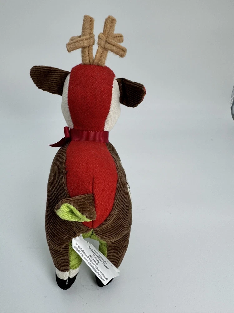 Add some festive cheer to your collection with this Starbucks Patchwork Reindeer plush toy. With its colorful patchwork design and cheerful expression, this 8-inch stuffed animal is perfect for both teens and adults. The reindeer features a multicolor finish and is part of the Animals collection, making it a great addition to any holiday or seasonal display. This original Starbucks plush toy was manufactured in 2008 and is in excellent condition, ready to be shipped to its new owner. The item length is 6.25 inches and the item height is 8 inches. Perfect for collectors of holiday and seasonal figurines, this reindeer is sure to bring a touch of animation to your home.