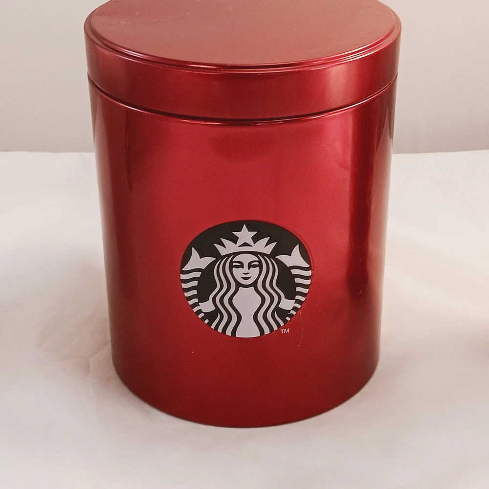 This Starbucks red metallic canister is a must-have for any coffee and tea lover out there! With a size of 6 inches by 5 inches, this canister comes with a cup and mug and is perfect for storing your favorite beverage. The canister is designed with the iconic Starbucks logo and is made in China. This collectible advertising item is an original piece and is perfect for any Starbucks fan. The red color of the canister adds a pop of color to any kitchen or office. Get your hands on this unique piece of Starbucks memorabilia today!
