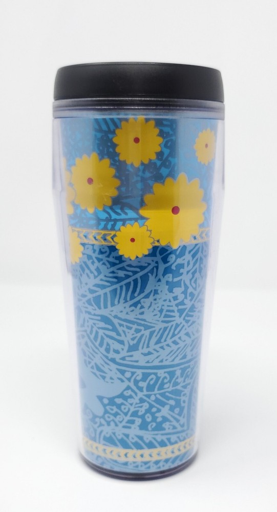 Starbucks "Summer Tumbler" Bright Yellow & Blue Flowers 16 oz..