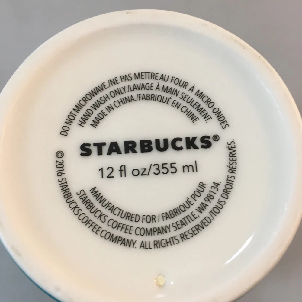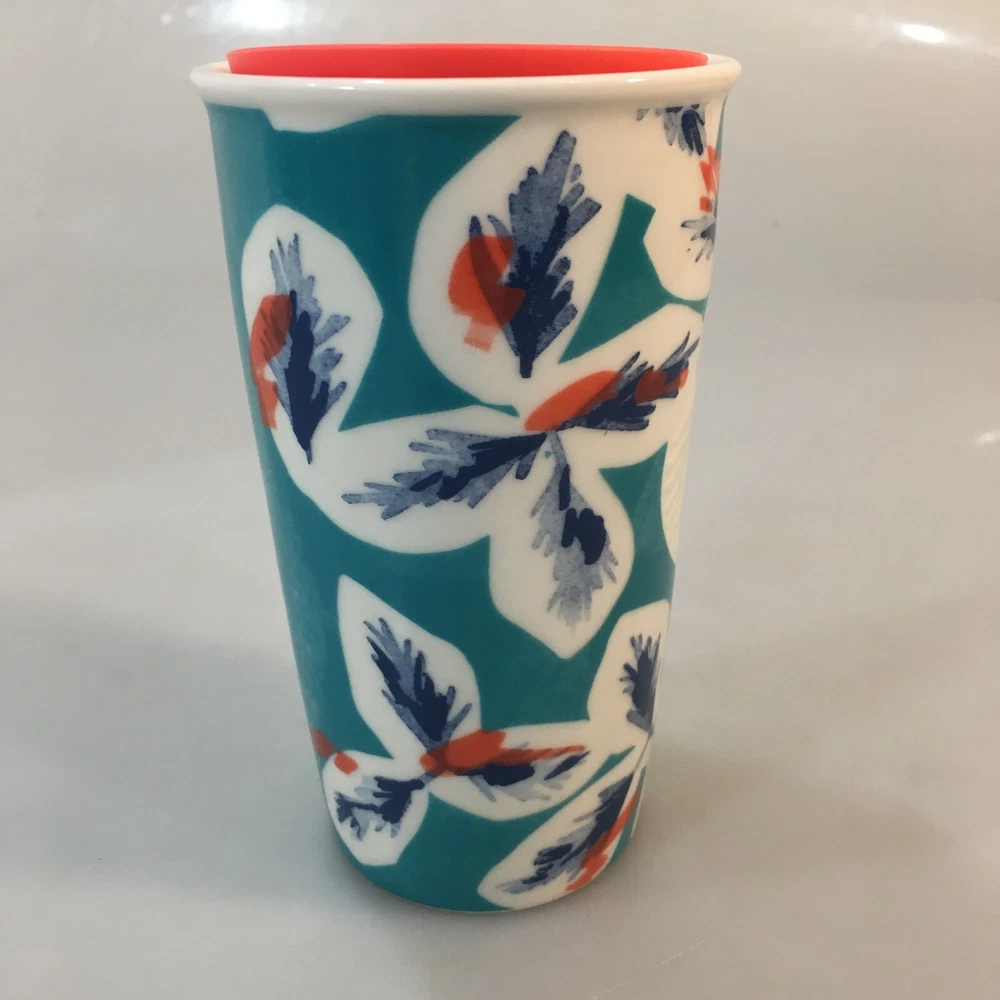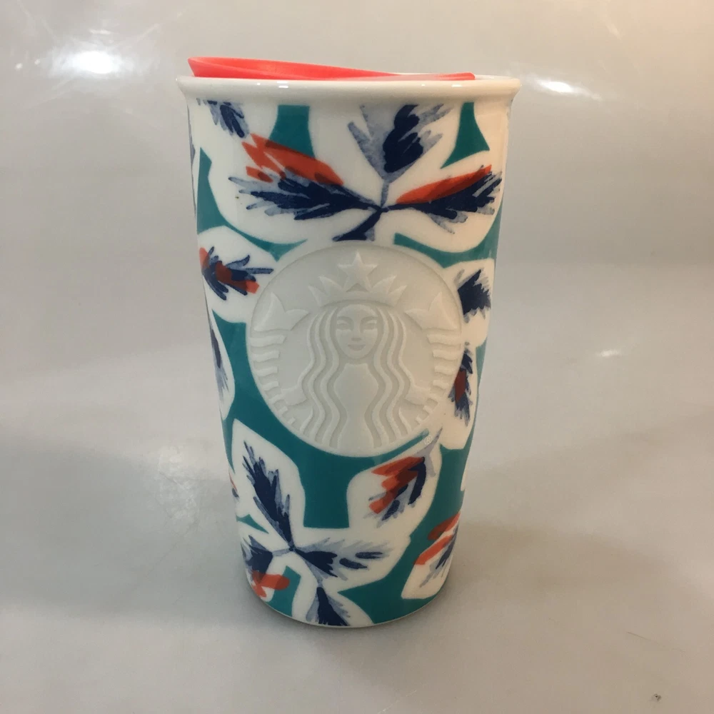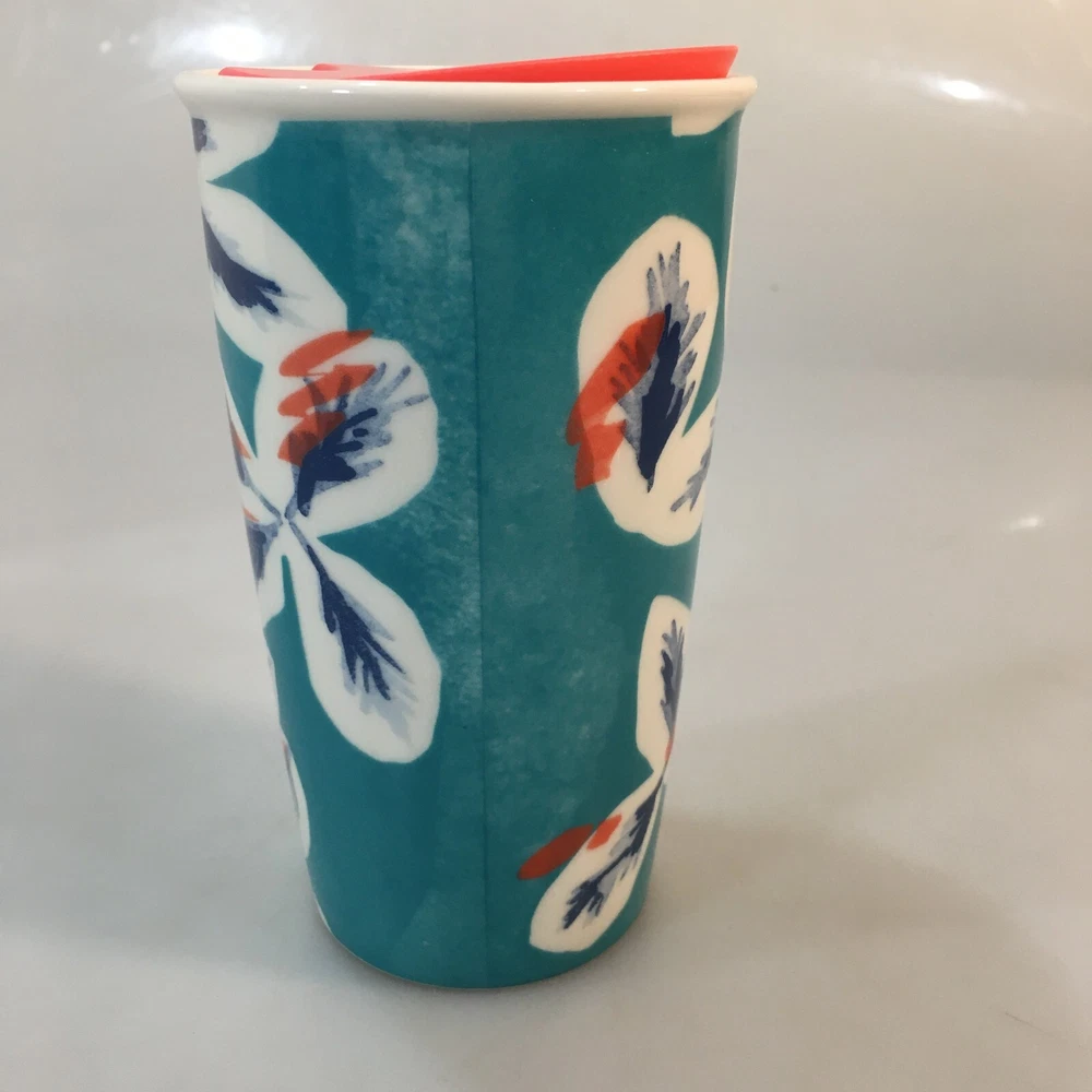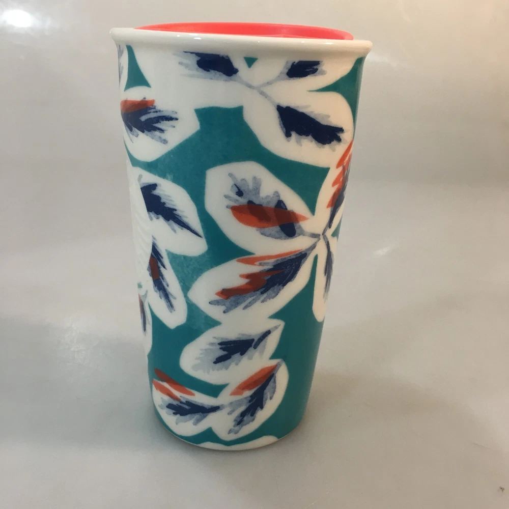 2016 - 12 oz Double-walled ceramic tumbler Teal, white, blue and coral / salmon with coral / salmon pink lid Excellent condition! I am happy to answer any questions and provide additional photos. Check out my other items ! International buyers are responsible for any import tax or customs duties. AG0424