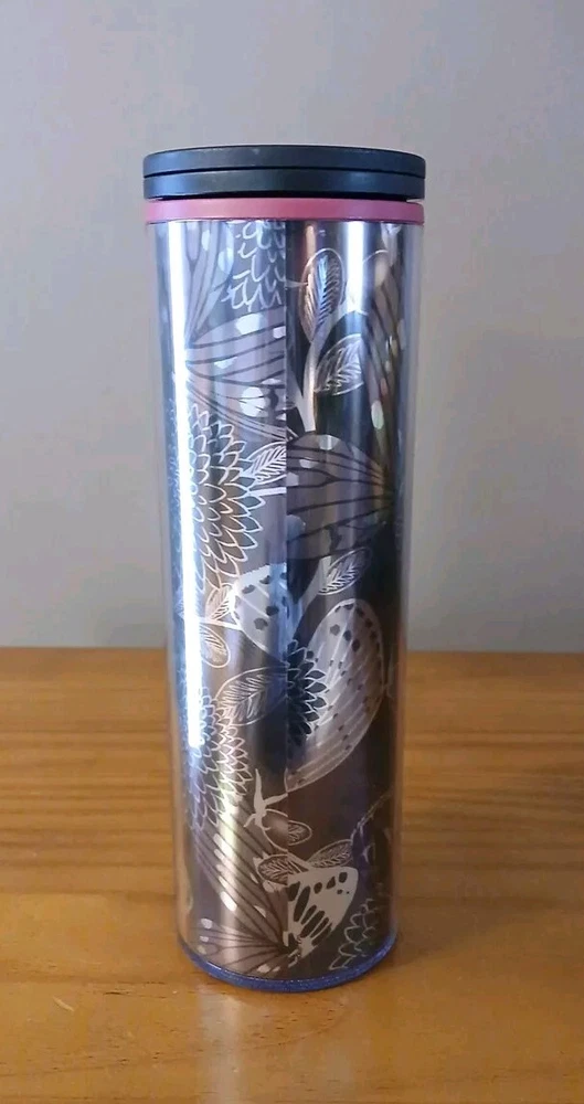 This is a 16 oz Starbucks Travel Tumbler made of acrylic, featuring a Black and Silver Metallic Butterfly design. It is a Limited Edition 2019 item with a coffee & Tea theme. The tumbler is an original creation from Starbucks, not modified, and was manufactured in China. This is an estate sale find, looks unused with paperwork inside the tumbler.