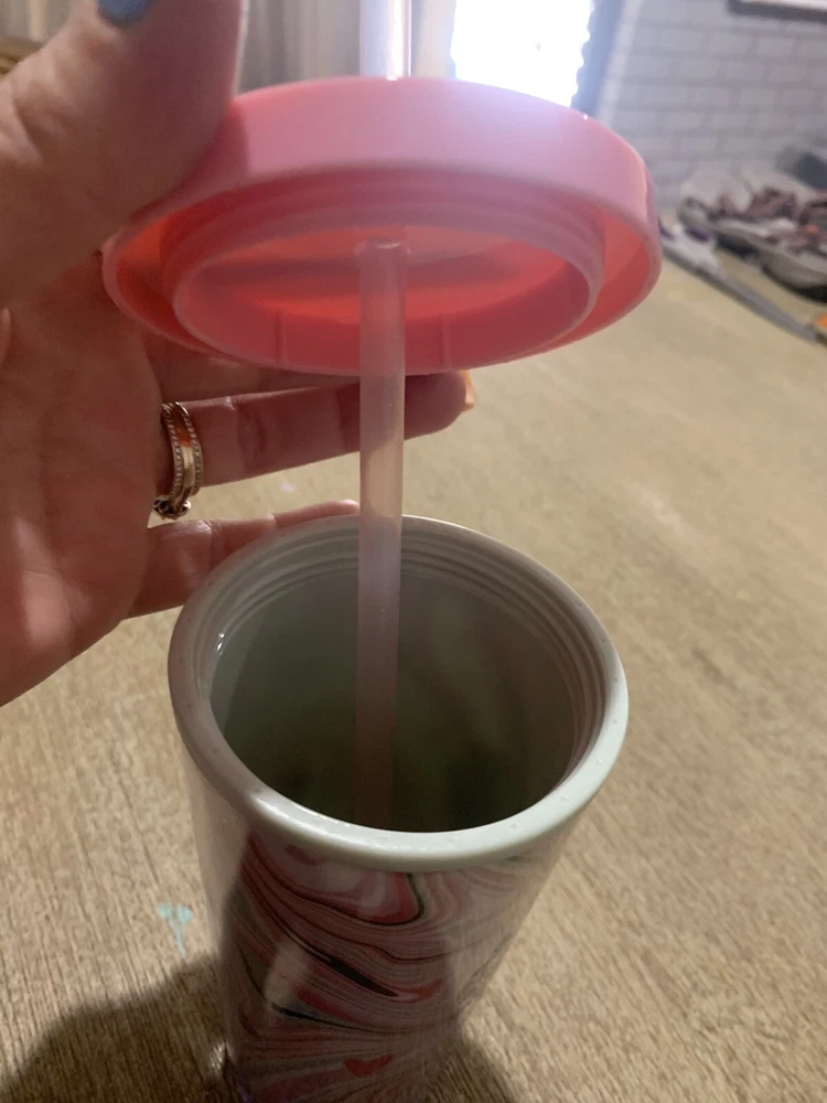 Size 12oz or 355ml The Starbucks Valentines Swirl Heart Large Tumbler is a delightful addition to any coffee lover's collection. With its pink design and included lid and straw, this pre-owned tumbler is perfect for sipping on your favourite hot or cold beverages in style. Emblazoned with the iconic Starbucks logo, this collectable item is a must-have for fans of the brand. Add a touch of charm to your coffee or tea routine with this unique piece.