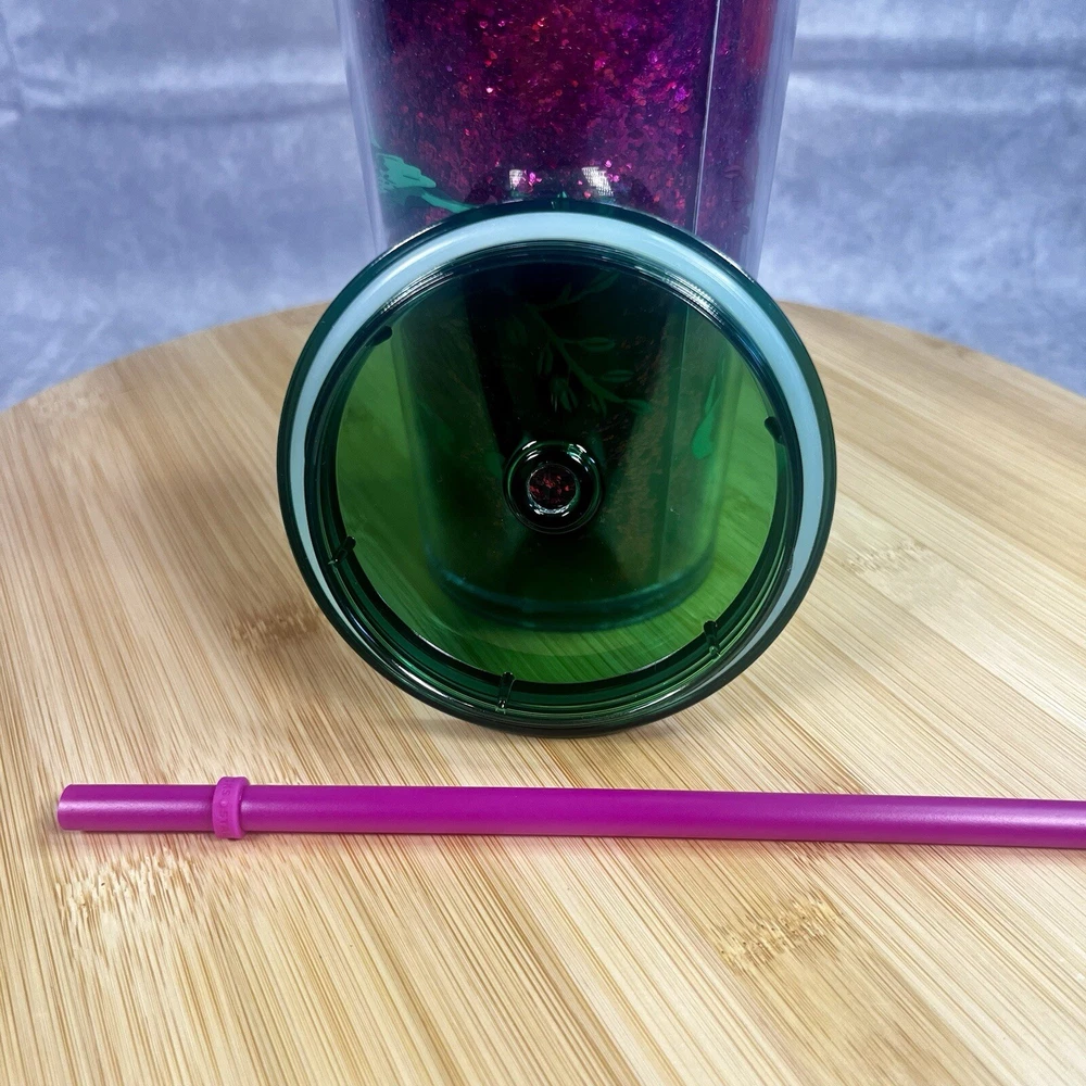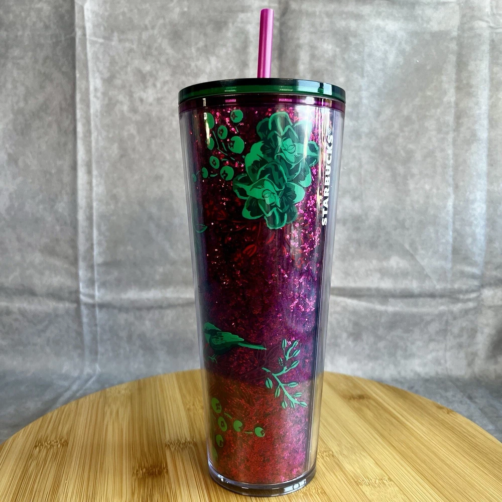 Starbucks Winter Holiday Tumbler Cold Cup 24 oz - Glitter w/ Green Flowers