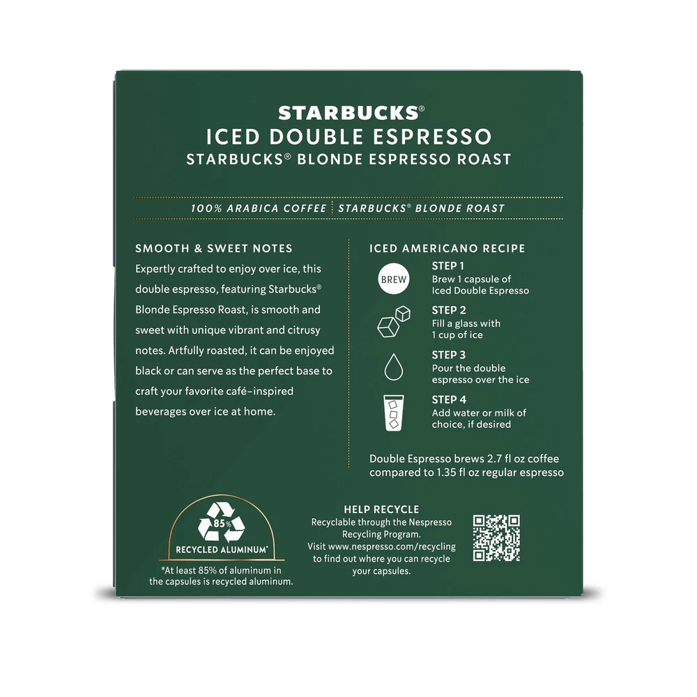 Starbucks by Nespresso Vertuo, Iced Blond Roast Coffee, 32-count Coffee Pods, Brews 2.7 oz. STARBUCKS BY NESPRESSO PODS: Enjoy the Starbucks coffee you know and love with these four 8-count boxes of Starbucks Iced Double Espresso capsules featuring Starbucks Blonde Espresso Roast—exclusively for Nespresso Vertuo machines, 32 capsules total INSPIRED TASTES: Expertly crafted to enjoy over ice, this double espresso is smooth and sweet with unique vibrant and citrusy notes. Artfully roasted, it can be enjoyed black or can serve as the perfect base to craft your favorite beverages over ice MADE FOR NESPRESSO VERTUO MACHINES: Each Starbucks Iced Double Espresso capsule for Nespresso Vertuo machines brews a 2.7 fluid-ounce cup STARBUCKS QUALITY AT HOME: Starbucks by Nespresso pods for Vertuo machines contain the same high-quality Starbucks coffee that you've come to expect RECYCLABLE: Starbucks by Nespresso capsules are made from aluminum and are recyclable through the Nespresso recycling program Shipping We offer FREE shipping on all orders! We ship within Three business days of payment, usually sooner. We use a selection of shipping services such as UPS, FedEx, USPS etc. We only ship to the lower 48 states, no APO/FPO addresses or PO Boxes allowed. Local pickups and combined shipping options are not provided at this time. Return You can return a product for up to 30 days from the date you purchased it ONLY if it's in the original condition. The product cannot be used or open. Any product you return must be in the exact same condition you received it and in the original packaging. Please keep the receipt. Feedback Customer satisfaction is very important to us. If you have any problem with your order, please contact us and we will do our best to make you satisfied. Contact Us If you have any queries, please contact us via ebay. We usually respond within 24 hours on weekdays. Please visit our eBay store to check out other items for sale! Thank you for shopping at our store.