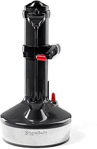 Starfrit Rotato Express 2.0 Updated Model 2017 - Electric Peeler Includes: (1) Rotato Express 2.0 (2) Replacement Blades (1) Thumb Knife & (1) 6V Adapter Peels A Variety Of Fruits Or Vegetables Of Various Shapes And Textures With The Press of A Button Simply Fasten The Produce On The Bottom Holder, Lower The Upper Holder Onto The Food, And Press The Red Button For Super-Fast, Effective Results Operates With A 6V Adaptor Included And Can Also Function With 4 AA Batteries (not included) - Cord Length Measures 31" L Measures 5.5" L x 5.5" W x 11" H - 1-Year Limited Manufacturer's Warranty