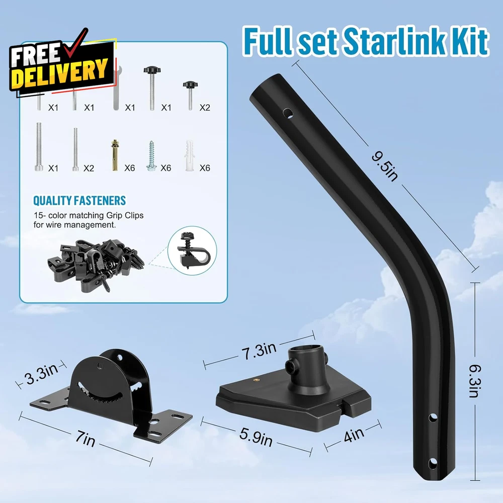 This Starlink Gen 3 mounting kit is a game-changer! The heavy-duty iron construction and stainless steel hardware make it incredibly sturdy, handling up to 500 lbs with ease. Perfect for any weather—wind, rain, or snow won’t budge it. The 180-degree adjustability ensures optimal positioning for your internet kit. Super easy to install and built to last. Highly recommend for anyone needing a reliable, durable mount!