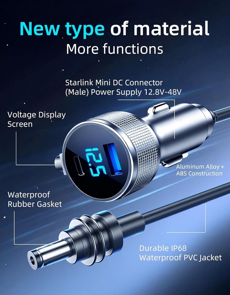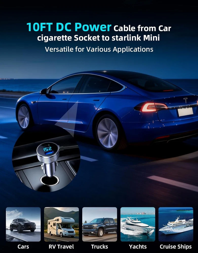Free eBay listing template designed by dewiso.com Starlink Mini Cable, 3 in 1 Starlink Mini Car Adapter DC Power Cable and Cigarette Lighter Adapter 12V-48V with Voltage Display, Durable USB-C PD 45W and USB-A 35W Ports,Suitable for Cars(10FT) FREE AND FAST SHIPPING! About this item Power Up Your Starlink Mini Anytime, Anywhere: 3 In 1 Car Charger Dc Power Cable,This Dedicated Starlink Mini Adapter is Compatible with Universal 12v-48v Cigarette Lighter Sockets. Not Only Does it Power Your Starlink, But it Also Features A Usb-C 30w and Usb-A 30w Port, Delivering Stable Power in Cars, Trucks, Rvs, and Boats. Dc Plug is a Proprietary Interface—Do Not Connect Other Devices to Prevent Damage Starlink Mini Cable Digital Display Voltage Monitor for Safe Power Supply: Featuring a Digital Voltage Display, This Starlink Mini Car Charger Dc Power Cable Provides Real-Time Monitoring of Your Vehicle’S Voltage. Verify That it Meets The 12.8v Minimum to Ensure Consistent Performance, Offering a Stable Connection That Keeps Your Starlink Mini Car Adapter Ready for Seamless Network Access On The Go Starlink Mini 12v Adapter Dual Charging Ports: This Starlink Mini Power Cable Dc Power Cable Includes Type C and Usb-A Ports to Charge Additional Devices Like Phones When Starlink Mini is Not in Operation, Ensuring You Stay Connected Across Multiple Devices. Its Dual-Port Setup is a Convenient Choice for Those on The Road, Supporting Varied Power Needs During Travel High-Strength Starlink Power Cable – Durable and Safe: Made with Robust 18awg Shielded Cable That’S Flame-Retardant, Uv-Resistant, and Cold-Resistant to -30°C, This Starlink Mini Power Supply Dc Cable is Built to Last in Extreme Conditions, Providing Dependable Power for Your Off-Grid and Outdoor Connectivity Needs Essential Starlink Mini Accessories - Plug and Play. Suitable for Different Cars, Trucks, Buses, Vans, Boat and Mobile Power Bank with Cigarette Lighter Socket. It’S A Miust-Have for Those Who Depend on The Starlink Accessories for Uninterrupted Connectivity. Starlink Cable it Allows You to Enjoy High-Speed Internet and Stay Online While Traveling or Driving Product We offer a 30-Day Return Policy on items which you are not completely satisfied with. You have the option for a full-refund or an exchange of the item. No returns are available on items shipped outside of the US . Shipping We offer Free Shipping to the US and ship within 2 business days of payment, usually sooner. We use UPS express shipping. That's why your products are usually delivered within 3 days . Contact We try our very best to make sure every customer is completely satisfied. If there's a problem , message us! We're happy to help. 24/7 live chat available.