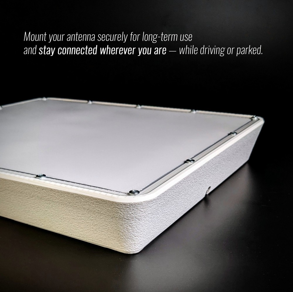 Secure stylish protective case for your Starlink Mini antenna. Allows you to mount your antenna on the roof and stay connected on the road — not just when parked. Provides reliable protection for your antenna and doubles as a stylish accessory. Allows long-term roof mounting of your Starlink Mini antenna and stable internet access both on the road and while parked. Protection against external physical impacts: branches, hail, stones, accidental bumps. Additional protection against theft. ⭐️ Key Features Minimalist and stylish design Fully 3D-printed one-piece body – no assembly or gluing required Strong and durable UV-resistant material Slight tilt for better aerodynamics and water drainage Two built-in openings for cable routing Acrylic cover is fully transparent to signal Optional version with 4 powerful magnets (70 lb pull force each) Dimensions: 12,7" x 11,2" x 4,9" Color options: White, Black, Gray Available configurations: 1. Mount only 2. Mount + 4 neodymium magnets (each with 32 kg pull force) 3. The aerodynamic fairing is fixed with 3M double-sided adhesive tape 📦 What’s included in the basic set: - One-piece ASA plastic housing - Thin, durable acrylic glass cover - 14 stainless steel screws