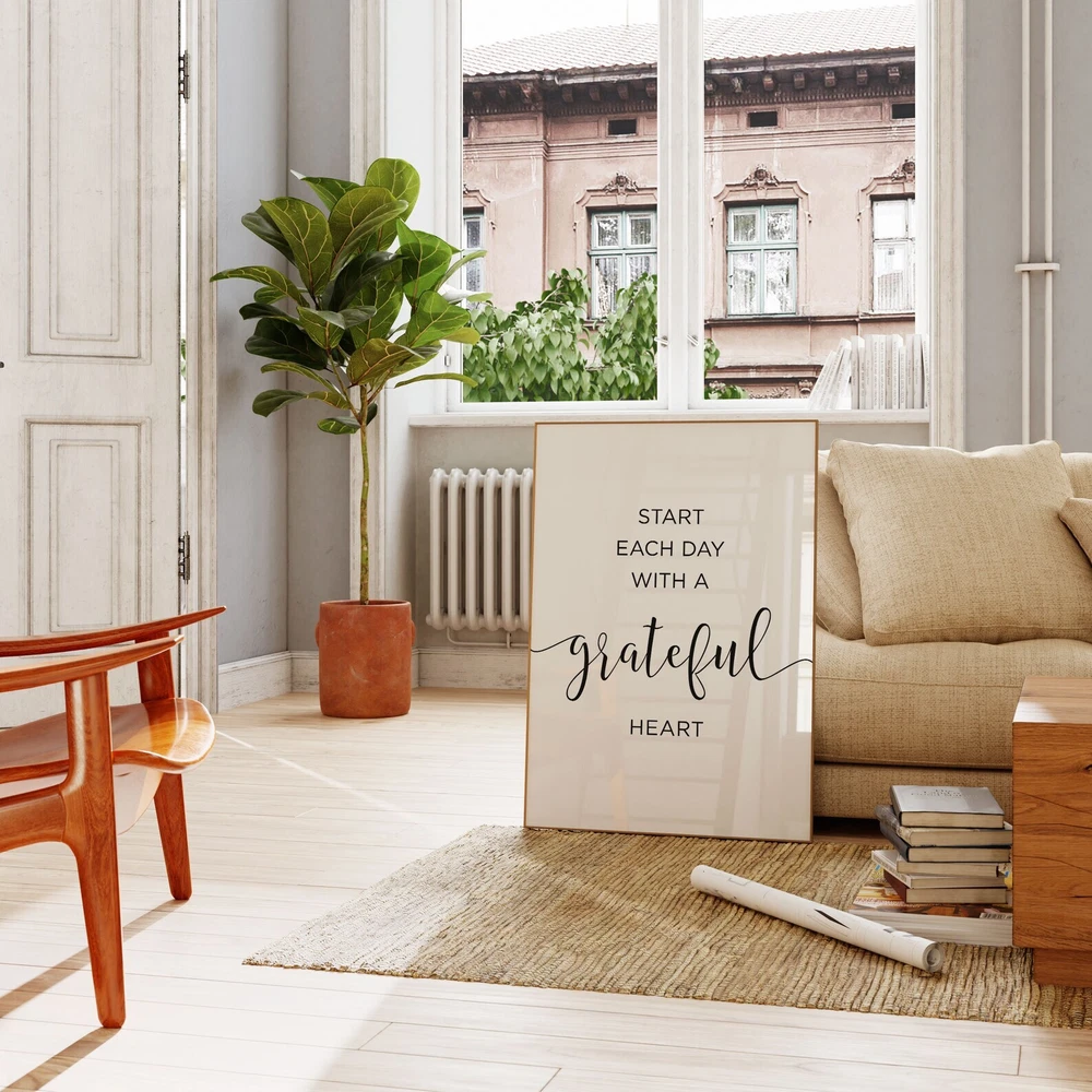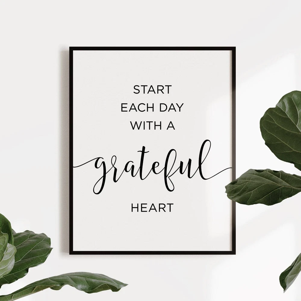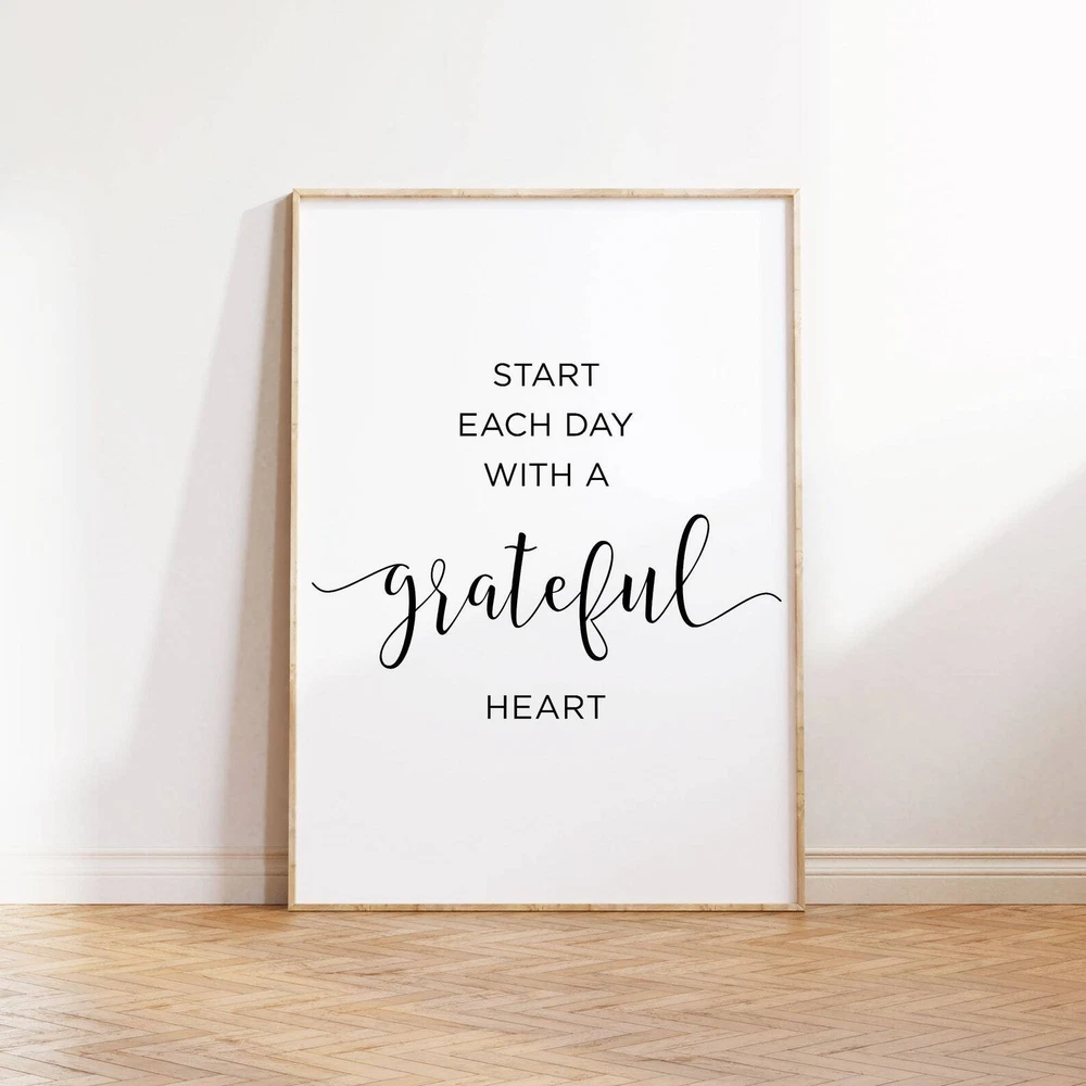 Start Each Day With A Grateful Heart Wall Decor Inspirational Quote Motivational Print Printable Quote Art Inspirational Poster Material: Premium luster photo paper Print type: Inkjet printing One side printed + The finish provides the highest possible resolution and color saturation + Lasts up to 200 years in color and 400 years in black-and-white + Printed on high-quality resin-coated photo base paper medium + Posters can be hung with double-sided tape, tacks, or framed + Hand washing with a gentle cry cloth is recommended for extended durability I will hand select the best choice of paper for your chosen design to ensure top quality results for a beautiful, bright and luxurious print. All prints are sealed in cellophane slips for protection during transportation, and are shipped in a protective cardboard envelope.