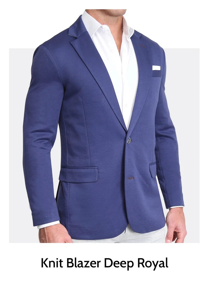 Unstructured Knit Blazer, Knit blazer is crafted from a soft performance knit blend fabric that is naturally stretchy while still providing a professional appearance.15 Unlined and unconstructed, this knit blazer is cut with our signature athletic fit and will be a versatile staple for years to come. Deep Royal is discontinued and cannot be bought in stores anymore.