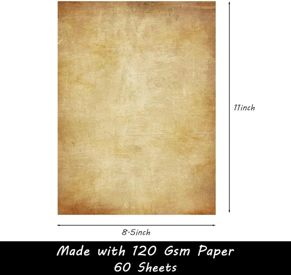 Stationery Writing Paper, 60 Sheets, 8.5" x 11", Vintage Thicker Double Sided Printing Paper, Antique Looking Letterhead Paper for Certificate, Invitation, Resume, Award, Diploma, Craft (A) Product Details Manufacturer: TEETOOKEA Brand: TEETOOKEA Item Weight: 13.1 ounces Product Dimensions: 11 x 8.5 x 0.39 inches Item model number: SP01 Material Type: paper Number of Items: 60 Sheet Size: 8.5-x-11-inch Inches Paper Weight: 120 Paper Finish: Glossy Manufacturer Part Number: SP01 Sheet Size: 8.5-x-11-inch Inches Brand: TEETOOKEA Sheet Count: 60 Product Dimensions: 11"L x 8.5"W Manufacturer: TEETOOKEA Vintage Antique Design: Experience the charm of our vintage antique design writing paper, featuring a timeless aesthetic that adds a touch of elegance to your letters, invitations, and crafts. 60 Sheets of Premium 120GSM Paper: Indulge in the abundance of 60 sheets, each crafted with premium 120GSM paper that is thicker than normal printer paper. Experience exceptional durability and a luxurious feel with ample space provided by the classic 8.5 x 11inch size. Versatile Usage: Perfect for a wide range of applications, including certificates, invitations, resumes, awards, diplomas, crafts, and more. Let your creativity flow on our thick and sturdy letter paper. Printer Friendly: Our printing paper is compatible with both inkjet and laser printers, making it convenient to print your designs, text, or artwork directly onto the paper.