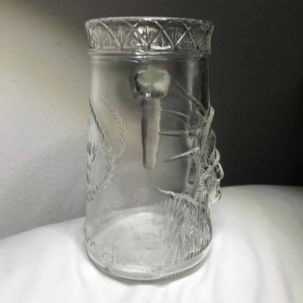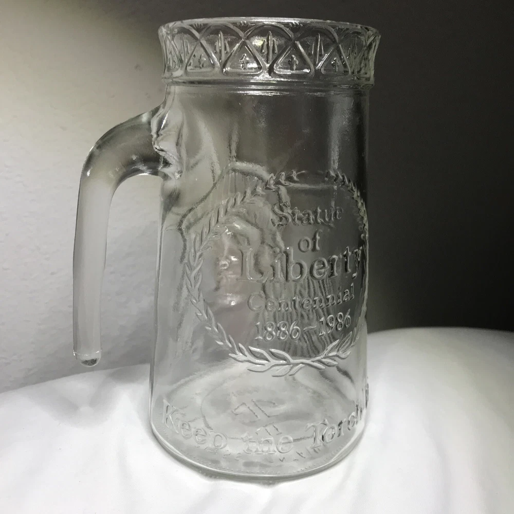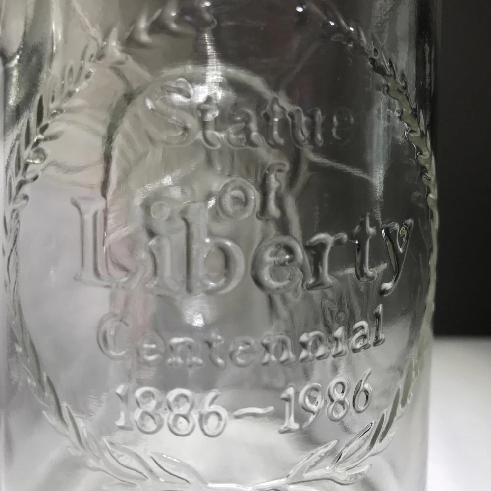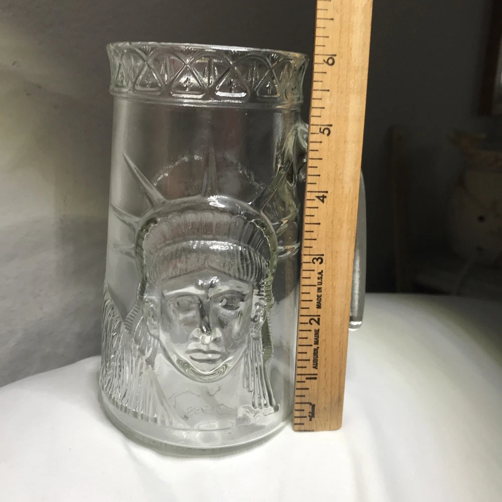 Celebrating the centennial of the Statue of Liberty ~ KEEP THE TORCH LIT. Dated 1985. Please see all photos for approximate measurements and condition. Glass remains clear with very little signs of wear. No chips or cracks. Design stands in high relief. Coming from a smoke-free home.