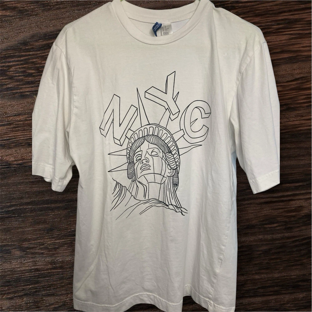 Show off your love for the city with this NYC Statue of Liberty White XS T-Shirt. This graphic tee features a stunning image of the iconic statue, representing the city's rich history and culture. Made from high-quality materials, this regular-sized shirt is perfect for men who want to add a touch of style to their wardrobe. The white color of the shirt complements the image of the statue, making it a great choice for any occasion. Whether you're going out for a casual lunch or taking a walk in the park, this tee will make you stand out from the crowd. So, if you're looking for a unique souvenir to remember your trip to New York City, this T-shirt is the perfect choice. Fits big