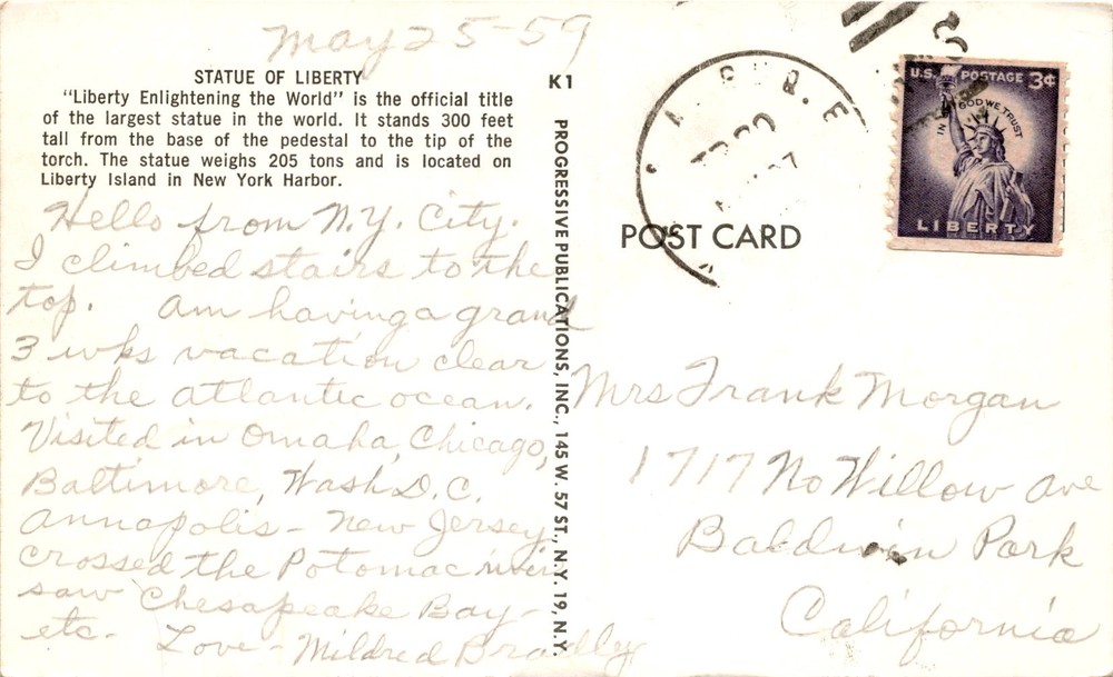 MAKE AN OFFER. THE MORE YOU BUY THE BETTER DEAL I WILL ACCEPT The postcard features a picture of the Statue of Liberty, officially titled Liberty Enlightening the World. It stands at 300 feet tall from the base of the pedestal to the tip of the torch, weighing 205 tons. The statue is located on Liberty Island in New York Harbor.