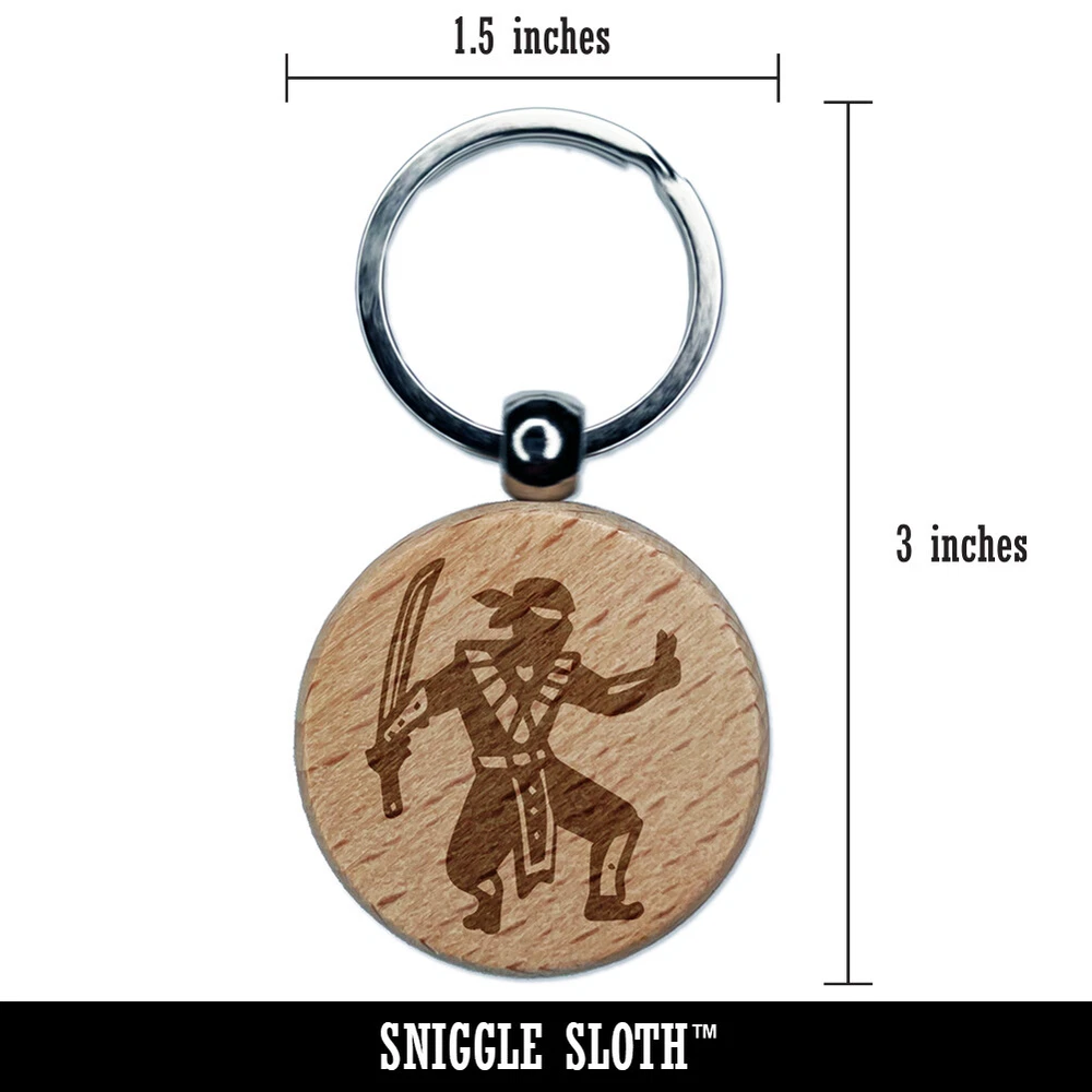 Stealthy Ninja with Sword Engraved Wood Round Keychain Tag Charm
