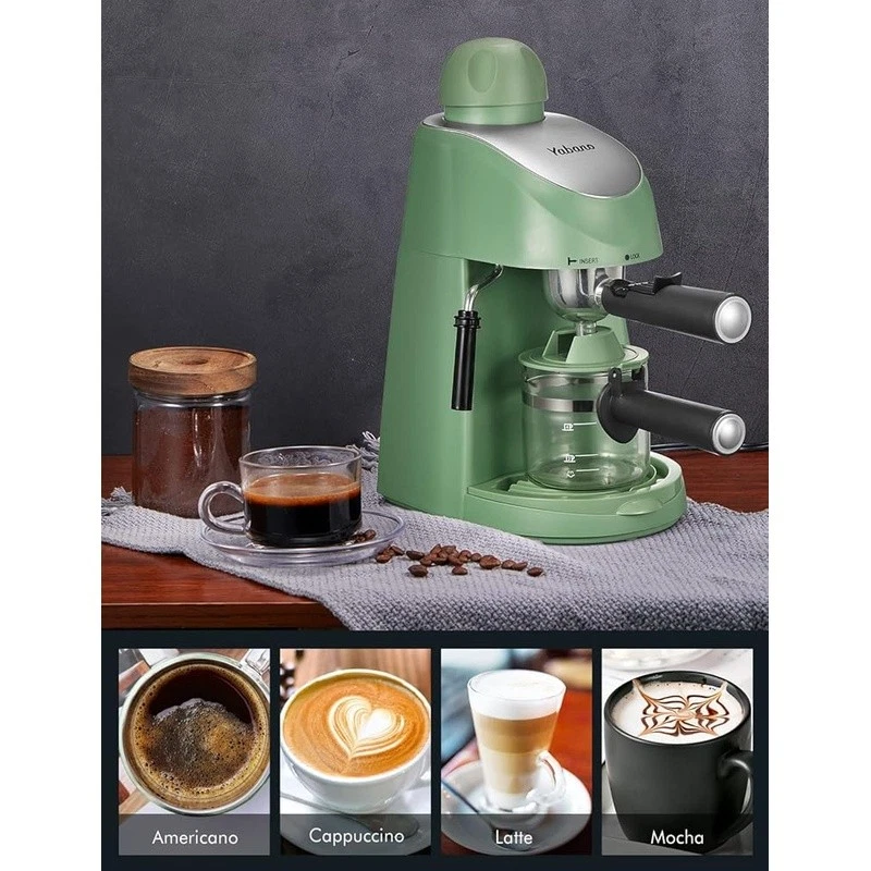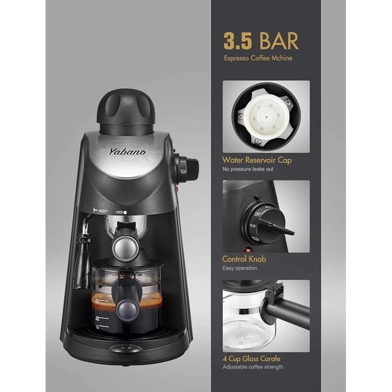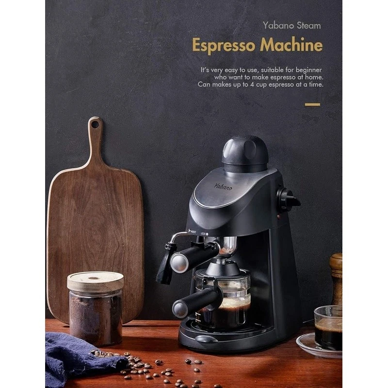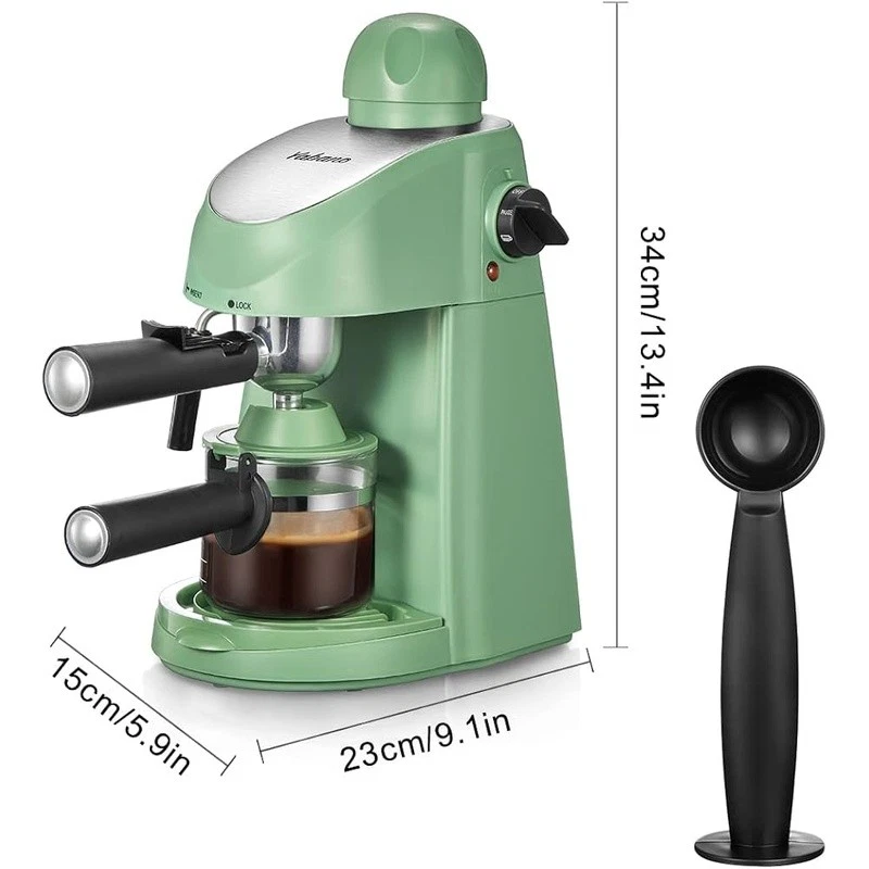 About this item Easy Operation - steam espresso machine is very easy to use, for beginner without requiring much techniques and skills. It can make up to 4 cups espresso coffee at the same time, serving delicious espresso, cappuccinos and lattes for yourself, your friends and family Steam Wand - espresso coffee maker come with a built in steam wand, You can enjoy cappuccino and latte with creamy and rich foam at any time at home. You can enjoy cappuccino and latte with creamy and rich foam at any time at home. Compact Design - It’s small and compact, doesn’t take up much counter space. Dimensions are 13.1" high x 7.7" wide x 10" deep, weight only 4.7 pounds, great for easy handling and storage Easy to Clean - The portafilter, nozzle and drip tray can be easily removed, makes it very easy to clean When installing filter holder, its handle must be aligned at lock position to ensure it’s locked tight. To ensure maximum flavor, Please use medium-coarse coffee ground. Brand: Capacity: 8.15 ounces Color: Black Product Dimensions: 13.43"D x 10.94"W x 7.6"H Special Feature: Milk Frother