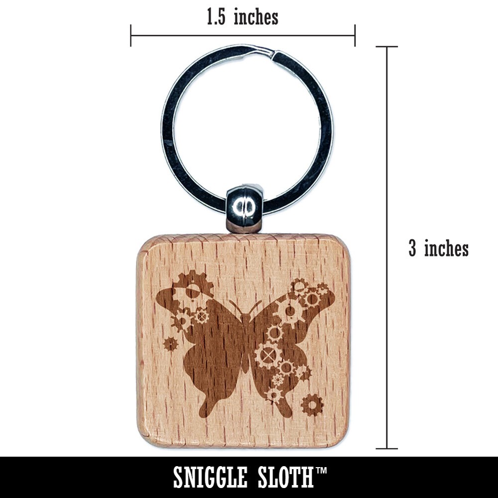 Botanical Flower Peace Sign Engraved Wood Square Keychain Tag Charm