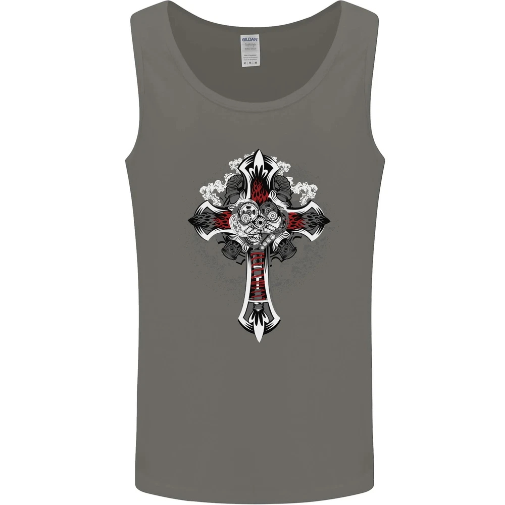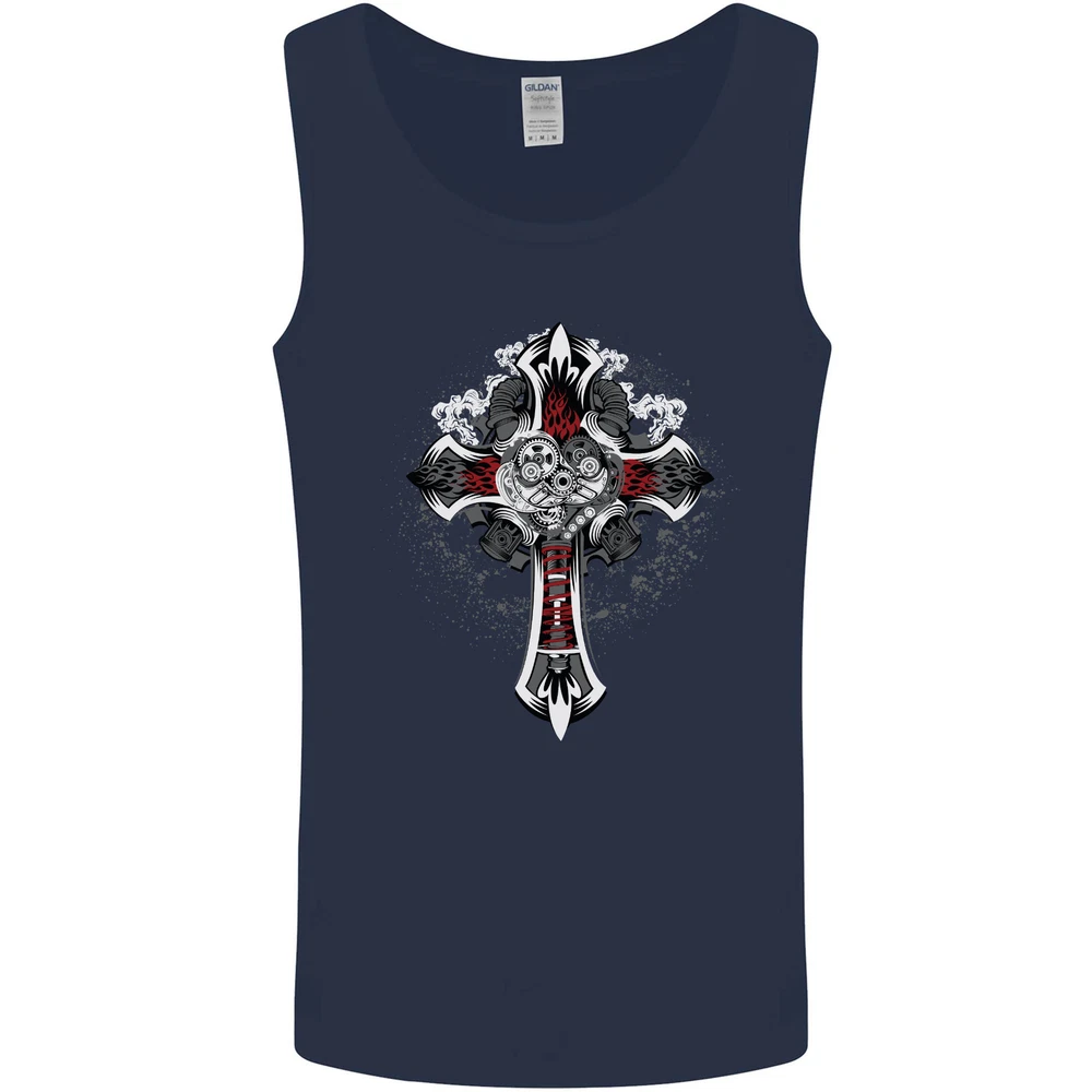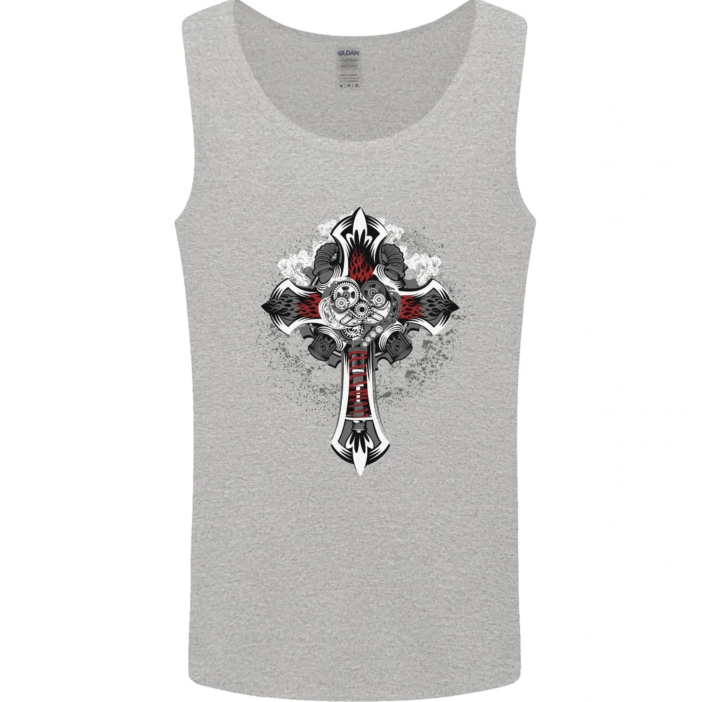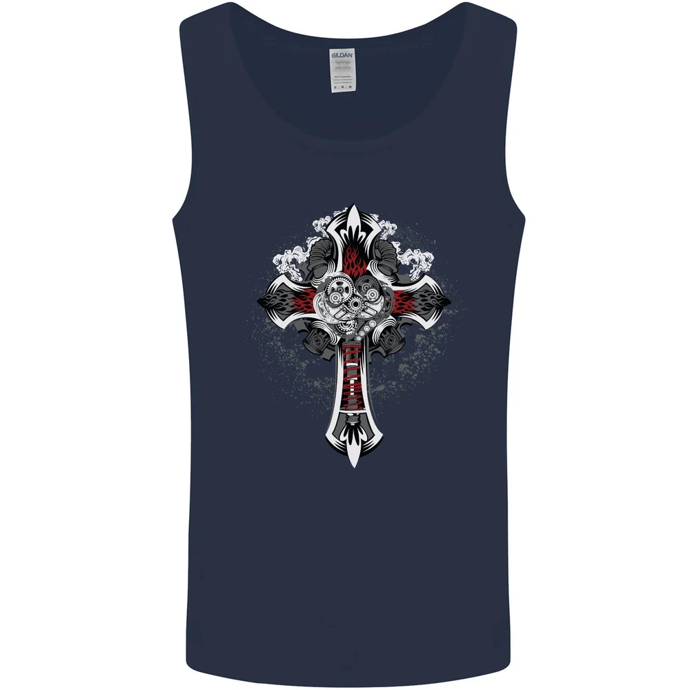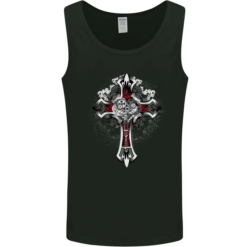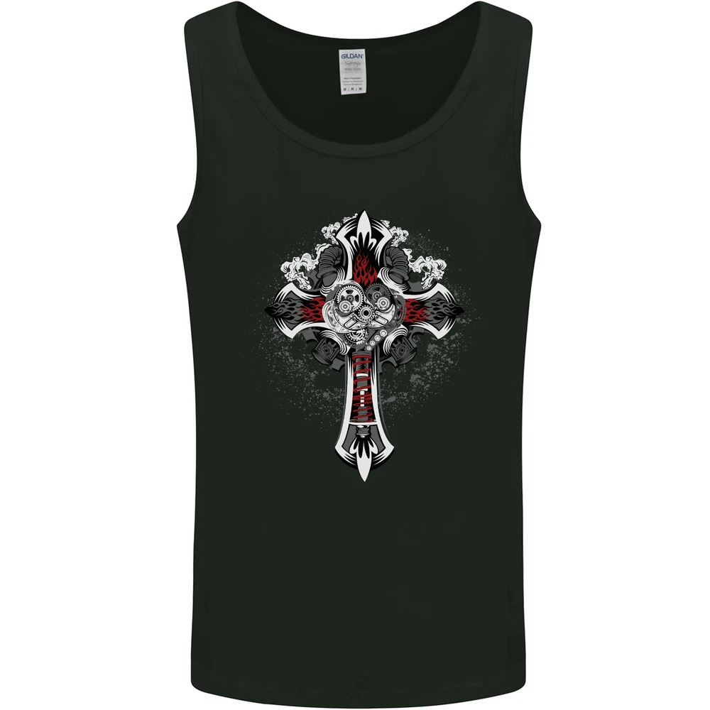 Steampunk Cross Gothic Heavy Metal Biker Mens Vest Tank Top