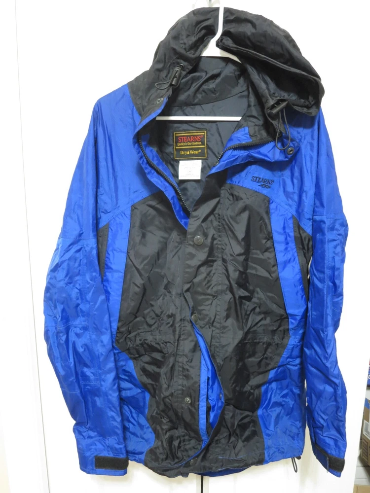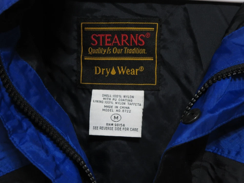 Performance/Activity: Hiking, Walking Closure: Zip, Snap Jacket/Coat Length: Mid-Length Color: Blue Outer Shell Material: Nylon Vintage: No Size Type: Regular Fabric Type: Softshell Style: Rain Coat Size: M Model: Stearns Dry Wear Department: Men Fit: Regular Country/Region of Manufacture: China Type: Jacket Personalize: No Occasion: Casual, Travel Features: Full Zip, Hooded, Pockets, Water Resistant Theme: Fishing, Boating, Outdoor Lining Material: Nylon Accents: Logo, Zipper Brand: Stearns Handmade: No Season: Fall, Spring, Summer, Winter Pattern: Solid