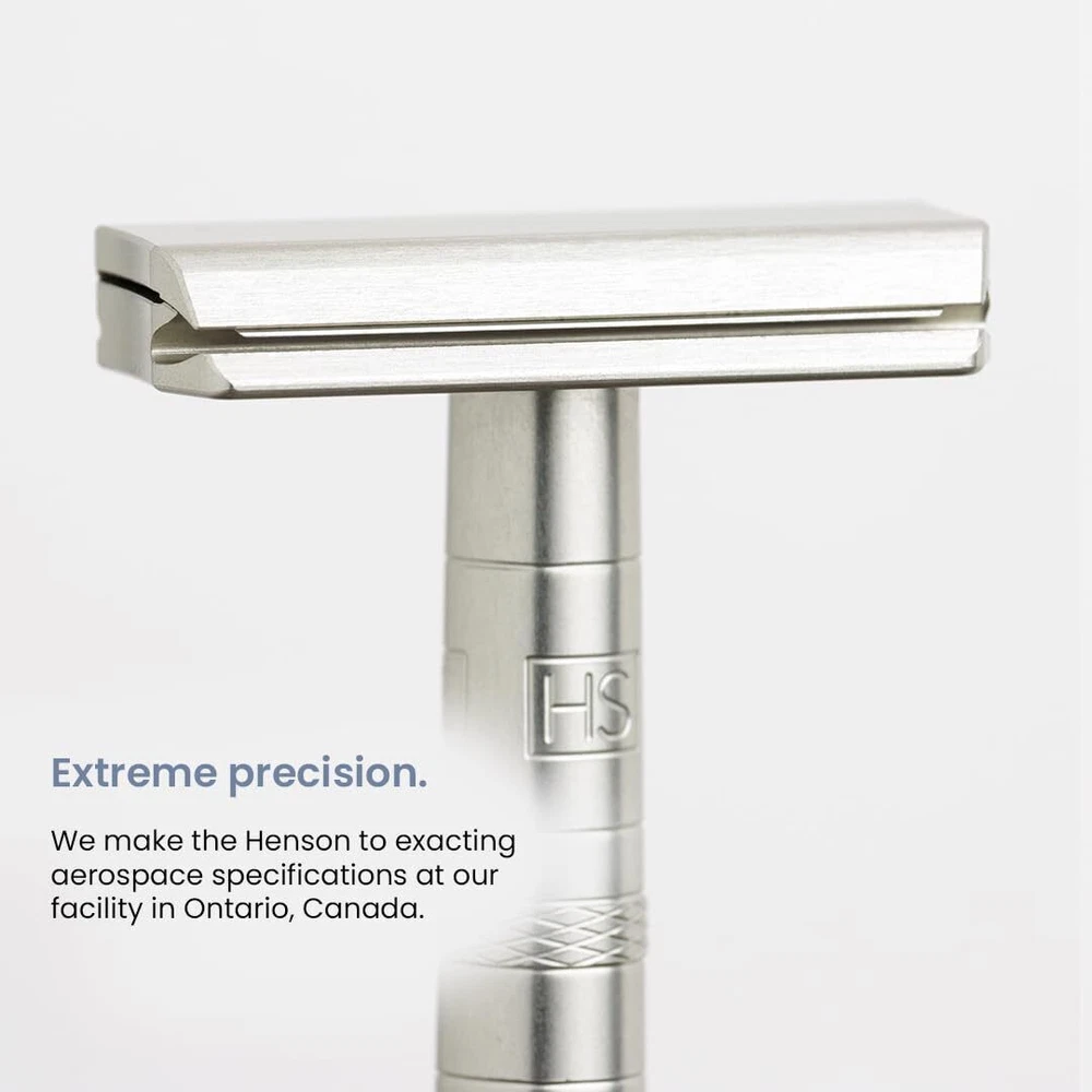 Unit Count 1.0 Count Special Feature Double Edge Skin Type All Number of Items 1 About this item Precision Engineering- Many men experience some form of irritation to the skin when shaving like razor burn, an inconsistent shave and ingrown hairs caused by inferior razors. At Henson, we've addressed this using our 22+ years of aerospace machining expertise to identify major flaws in mainstream razors, such as unsupported cutting blades, and designed the Henson Double Edge Safety Razor in a way that truly protects your skin 30° Blade Angle- Hensons single blade razors for men and women are designed with a 30 degree angle when in contact with the skin, this strikes the perfect balance between shaving efficiency and comfort. This helps minimize skin irritation cuts and razor burn, and allows you to shave with confidence Blade Rigidity & Free End Length - Rather than a gradual bend across the entire width of the blade, the head of the Henson razor creates a focused bend close to the blade’s edge to maximize the rigidity of the blade.The longer the blade the more flex it has which can result in skin irritation and an inferior shave. Our short free end length supports the blade close to the cutting edge, further reducing any chatter during a shave Wide Open Channels - Henson AL13 razor is beginner friendly and easy to clean. Its sleek, open channels let shaving creams and hair rinse effortlessly from the razor’s head, eliminating the need to clear off any clogged hair left from the blade